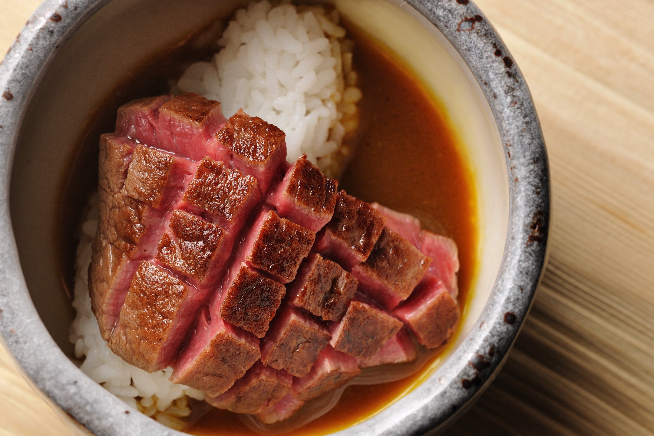 〆には、一定の時間蒸らし、お米の芯まで炊き上がった白米と星のや発酵カレーに、スプーンで切れるほど柔らかいシャトーブリアンをあわせます。夏バテの予防に効果的と言われるたんぱく質(*2)を、脂肪が少ない希少部位のシャトーブリアンで補いながら、コースの〆を楽しめます。
