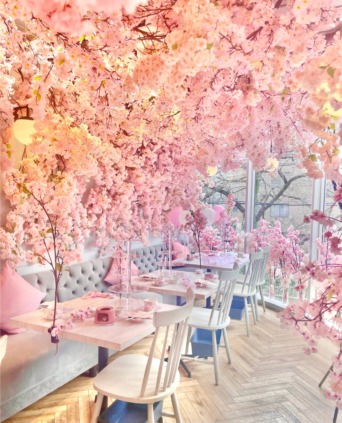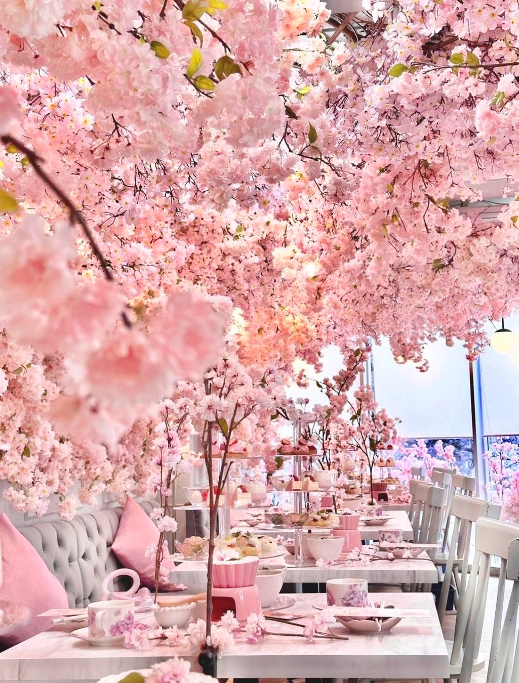 店内は桜の花で満開に装飾され時期や天気に関係なく満開の桜の下でアフタヌーンティーを楽しめます!