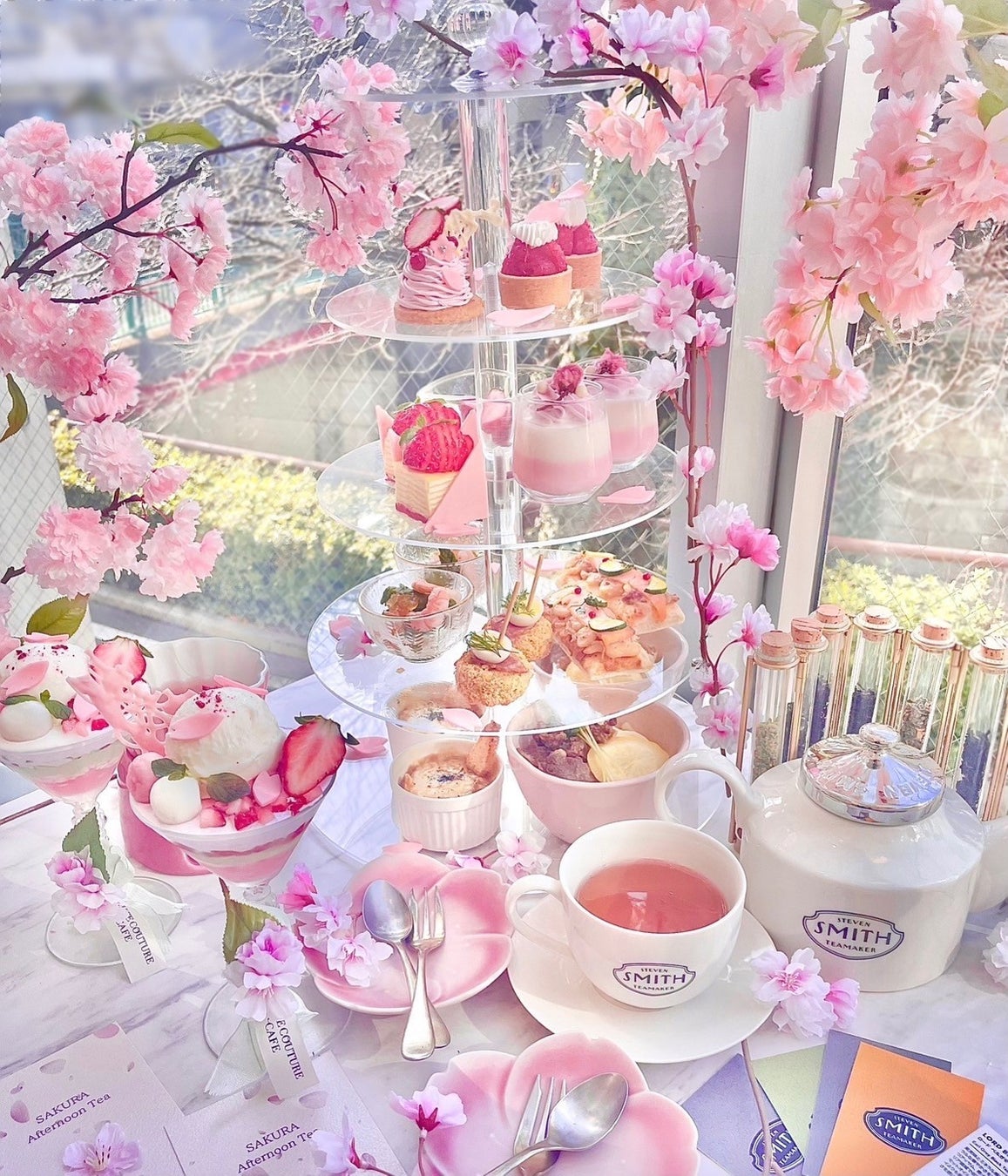 今回の桜アフタヌーンティーは高級ティーメーカーのSMITH TEA MAKERとのコラボが実現し、ブリティッシュブランチ、レッドネクター、HO HO ほうじチャイ、ペパーミントリーブス、メドウ(chamomile)、等がおかわり自由となります。