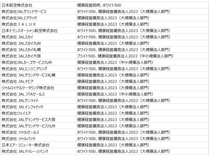 また、JALグループ24社は、日本健康会議による「健康経営優良法人2023」(*2)に認定されました。