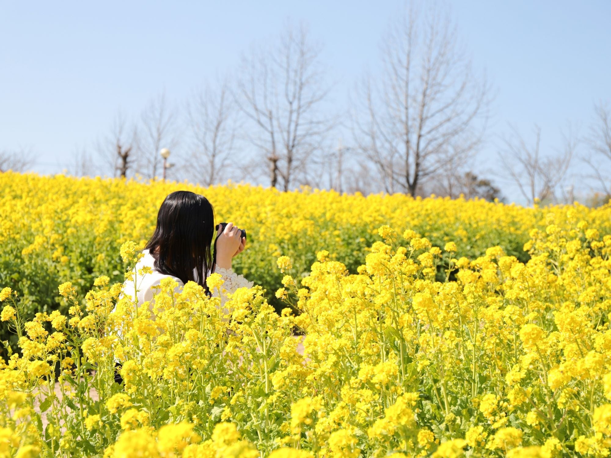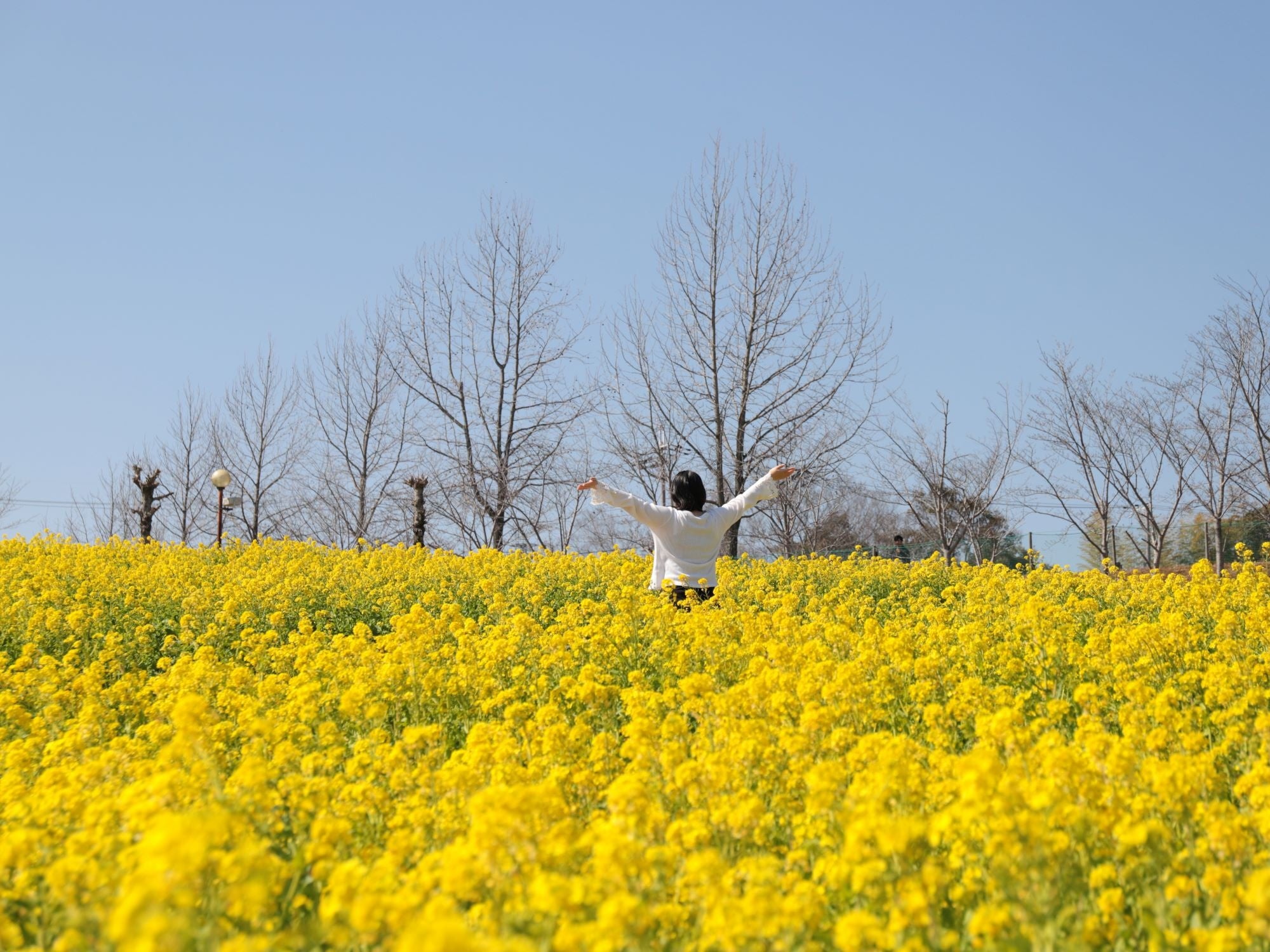 春の訪れを楽しむ黄色い絨毯「50万本の菜の花」