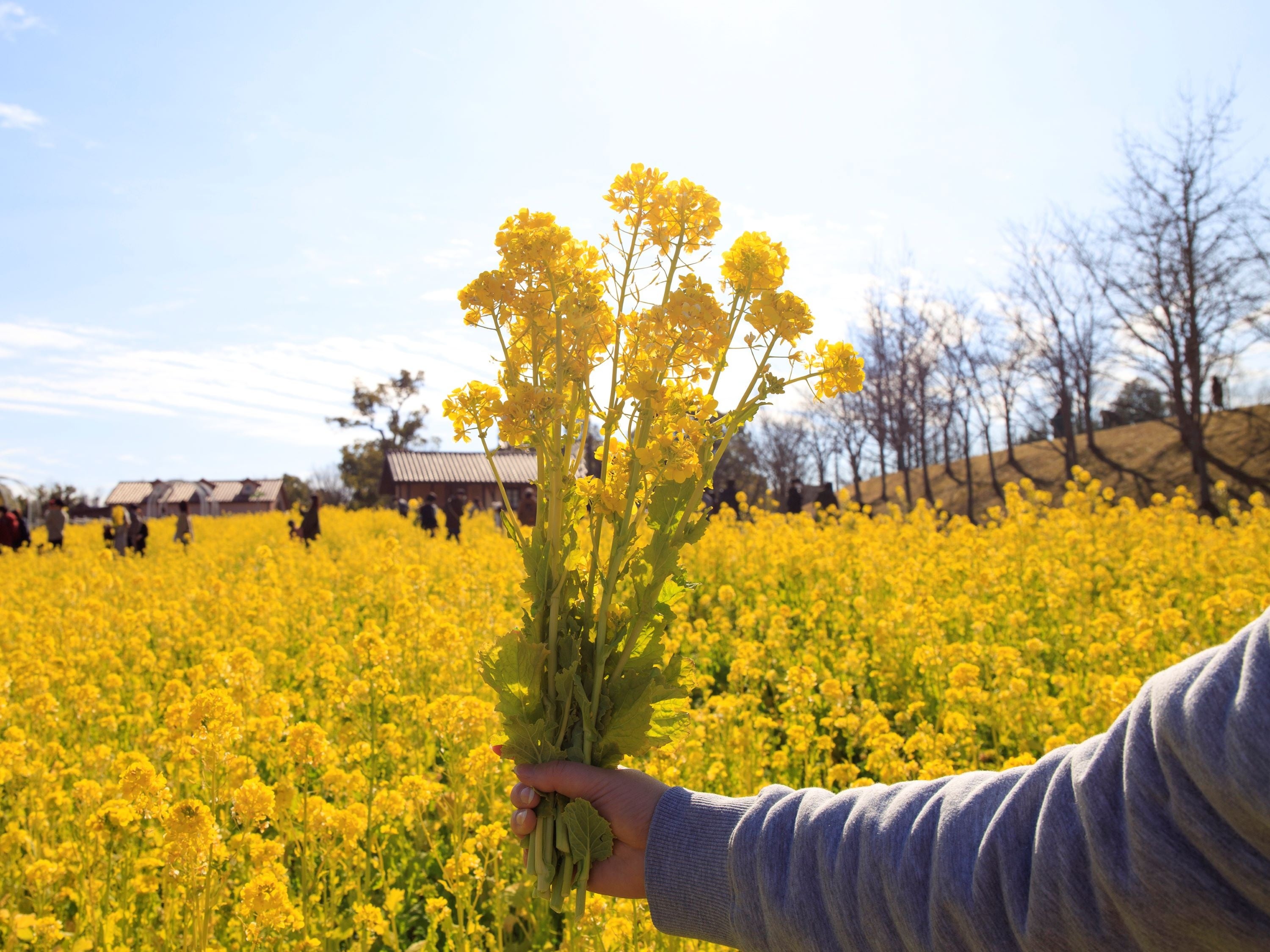 花畑に咲いている菜の花を摘んでお持ち帰りいただけます。
