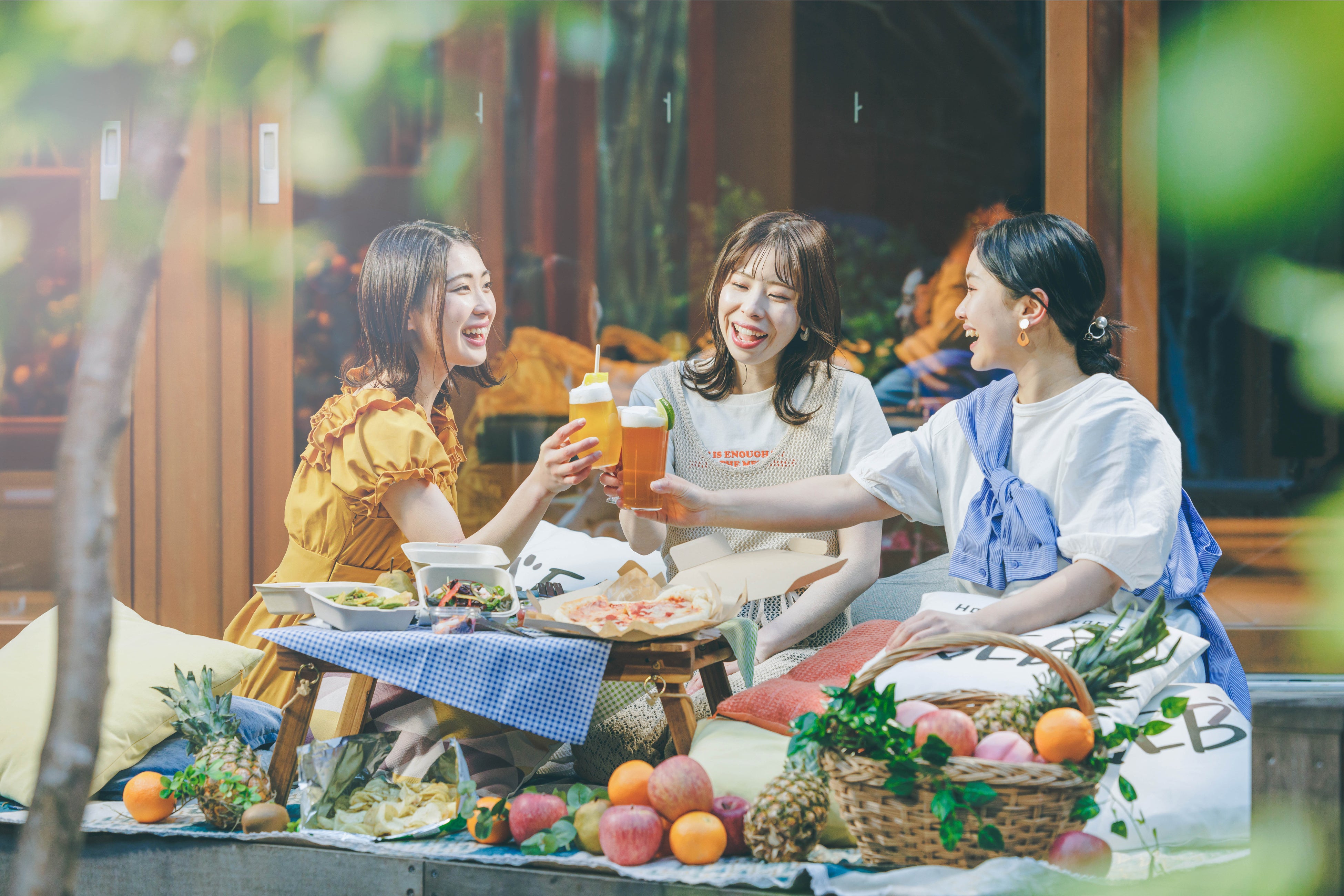 TAMARIBA内の好きな場所で、時間を気にせずビールを楽しむことができます。中庭で涼しい風を感じながらビールを飲むのもよし!ヤグラ構造の足を伸ばして座れる「ヤグラソファ」で、おうちのようにくつろぎながら楽しむもよし!滞在中、24時間、いつでも好きな場所でビールを満喫できます。