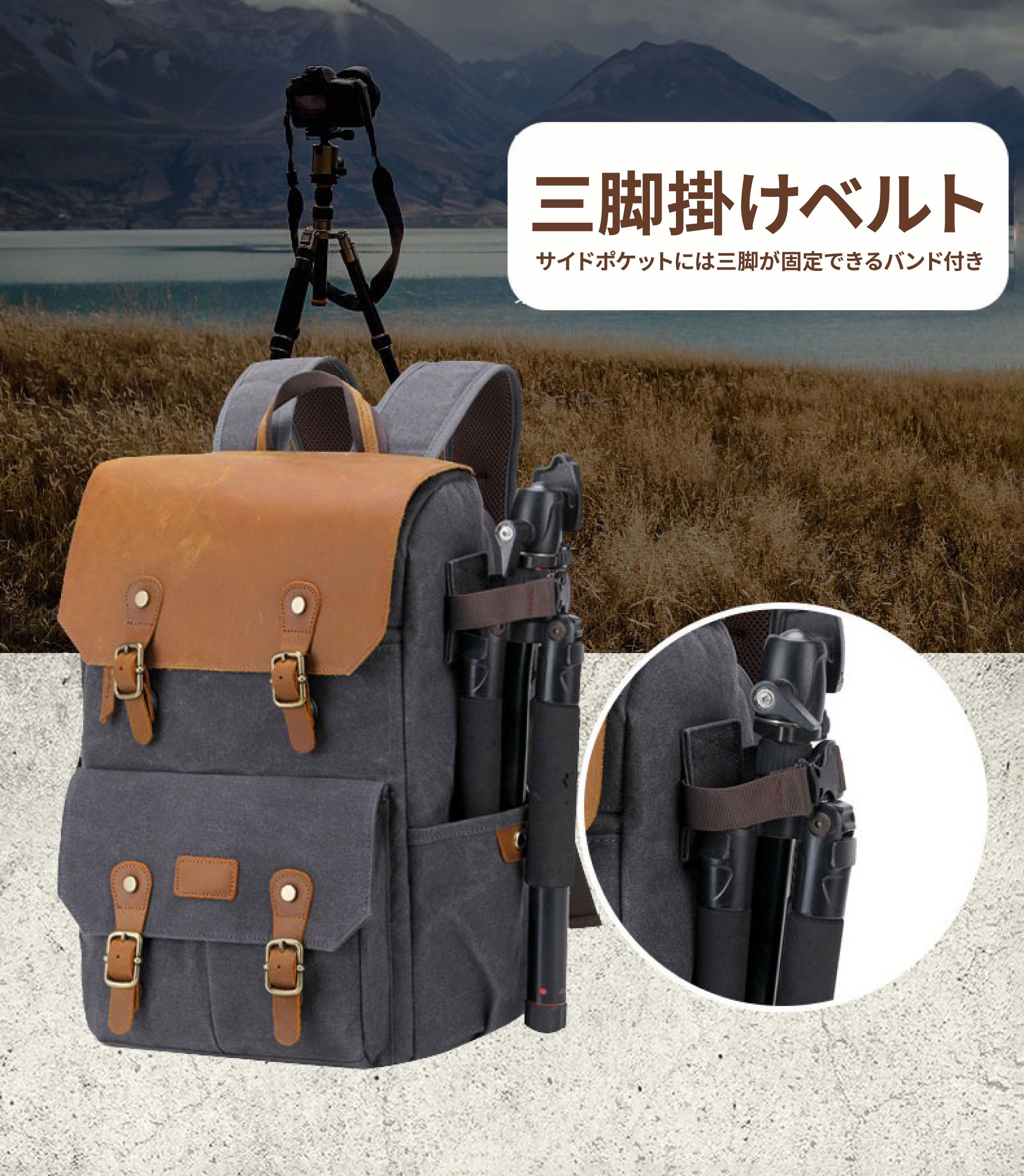さらに三脚を固定するベルトも付いているのでより強力に荷物を固定することができます。