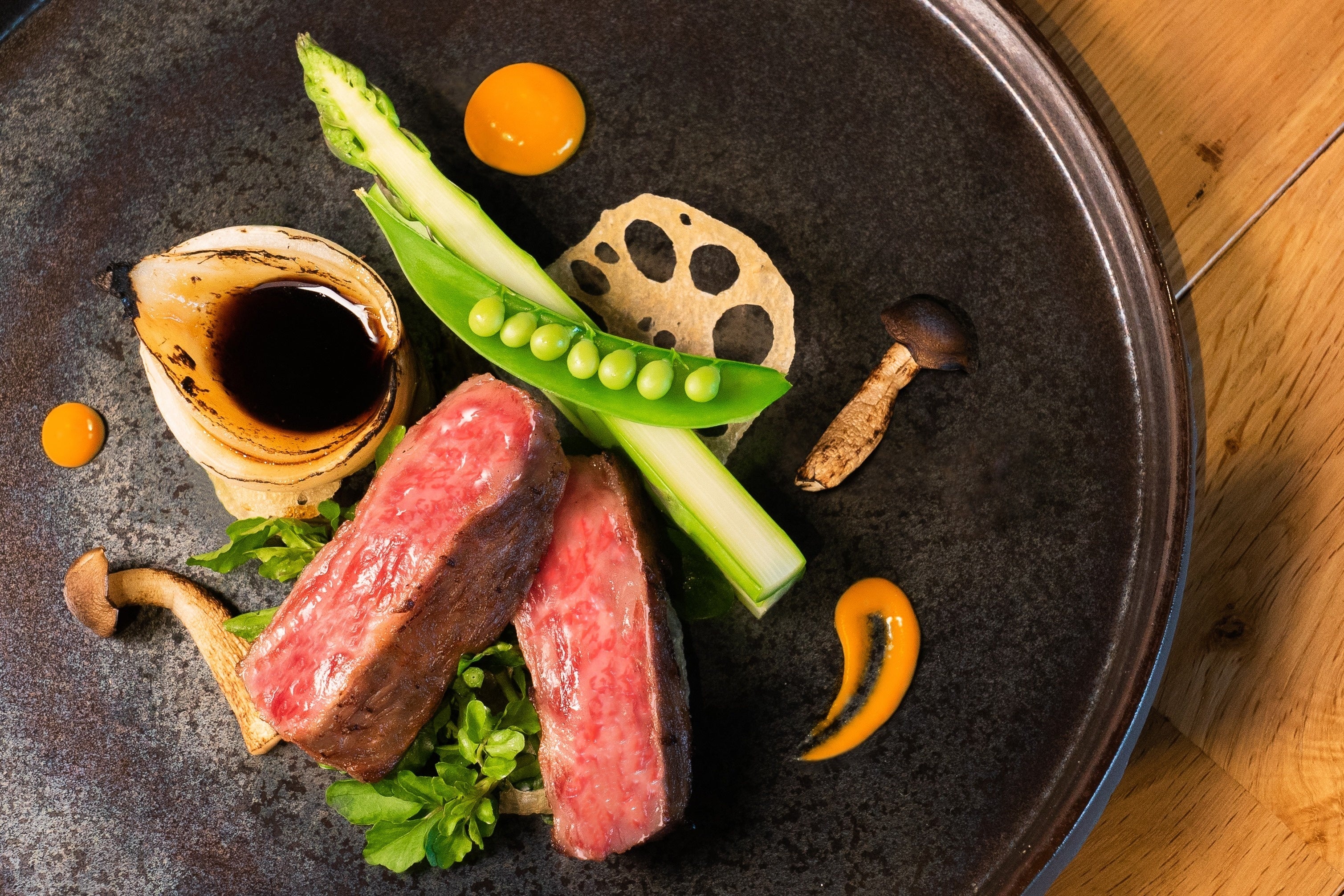 山形牛/米沢牛のステーキ – 春の薬味を添えて –