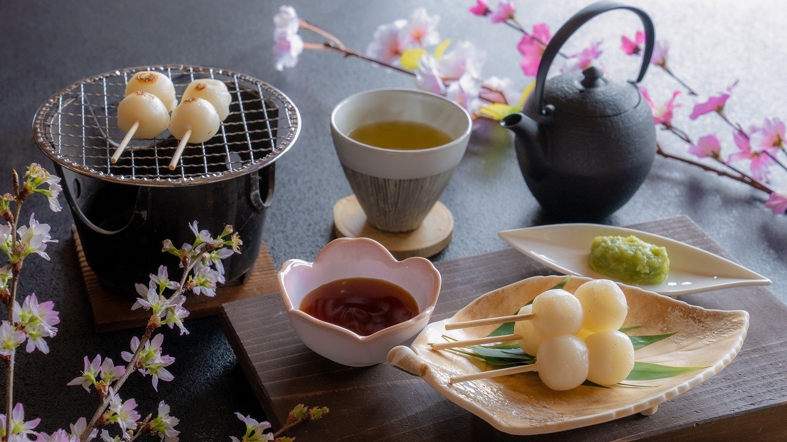 桜の期間に特別開放する「お花見ギャラリー」にて、お客様自身でおだんごを焼いてお召し上がりいただきます。春の美しい情景に心がめざめるひとときをお過ごしください。