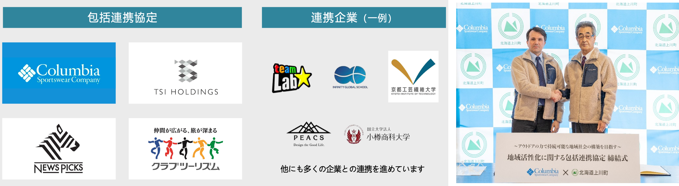 また、「日本一オープンイノベーションなまち」として、多くの企業との連携も推進。R4年度より上川町東京事務所を設立し、都市部の企業との連携事業の実施など、地域内外問わず課題解決ベースで先駆的な地方創生プロジェクトに数多く取り組んでいます。