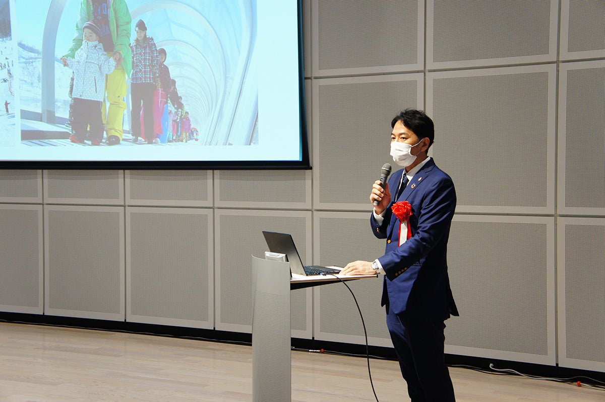 2023年2月20日に大阪中之島美術館で行われた授賞式には奥伊吹観光株式会社の代表取締役草野丈太が登壇して、オンライン配信と合わせて、国の機関、経済界、自治体、支援機関等の多くの関係者様に向けて「スノーリゾート推進事業」の取り組み内容についてプレゼンテーションを行いました。