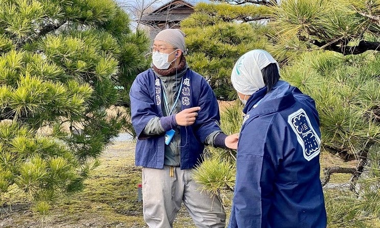 東本願寺の御用庭師による解説とご案内、剪定実演