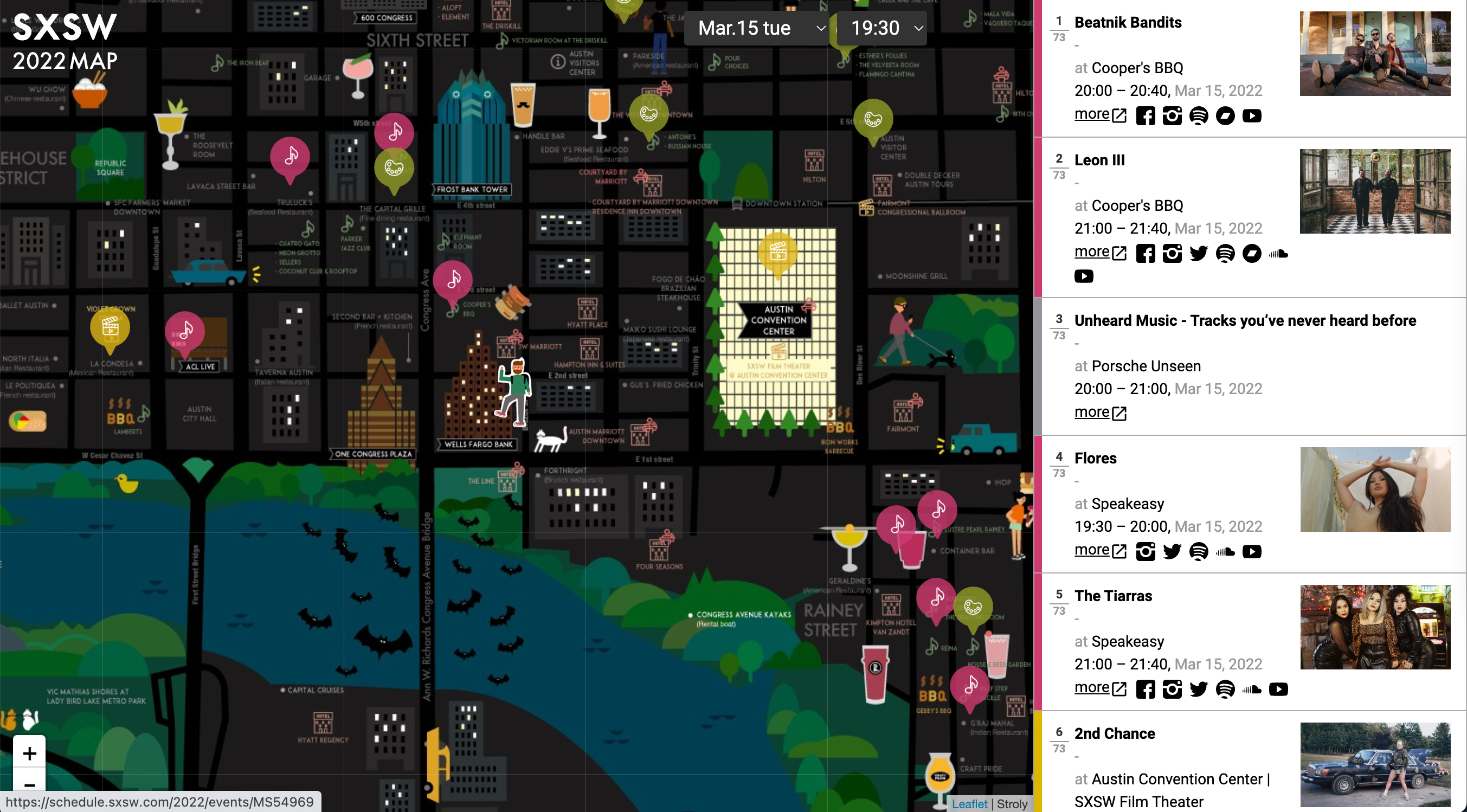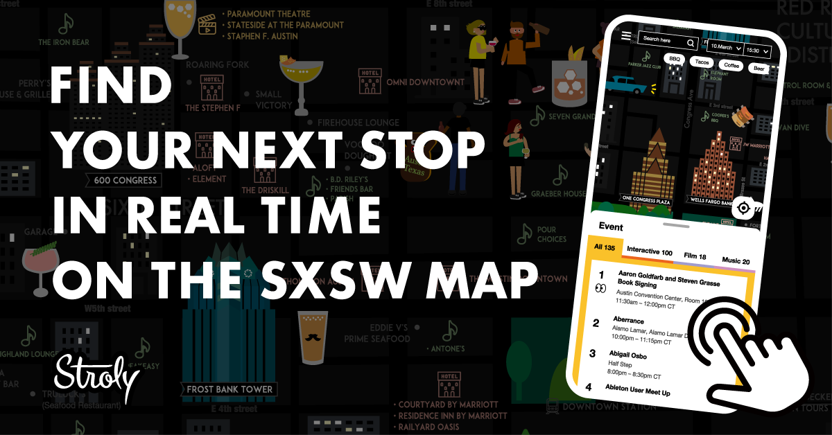 株式会社Strolyは、2019年に開催されたSXSW(サウス・バイ・サウスウエスト)で、スタートアップ向けのピッチイベントで応募800社からファイナリスト50社に選出された初めての日本のスタートアップです。2019年から公式マップの公式スポンサーとしてSXSWをサポートしています。世界中から音楽・映画関係者やスタートアップ、大手企業が集まる世界最大級の祭典、SXSWにふさわしいイノベーティブな方法でマップを提供します。