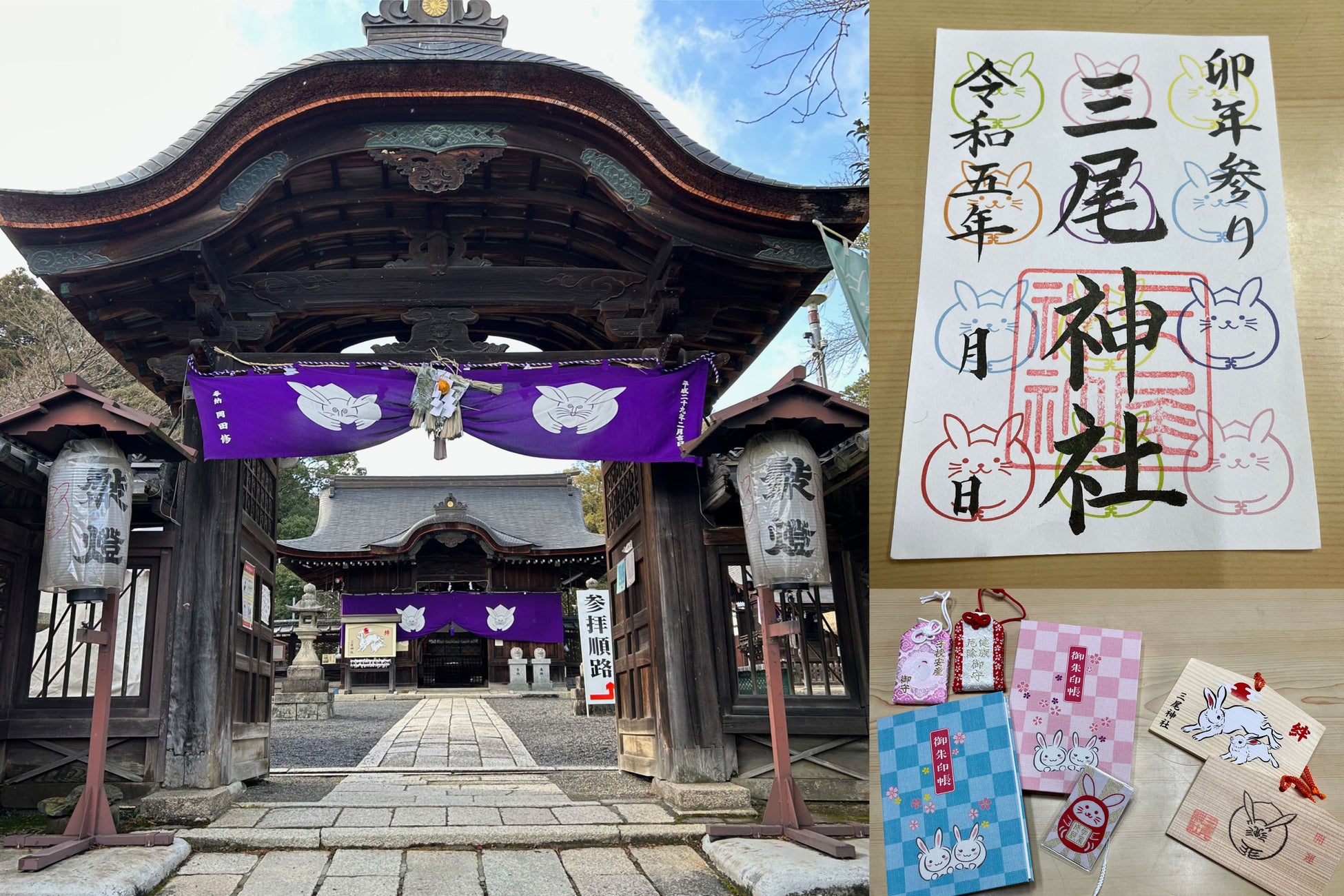 琵琶湖ホテル最寄り駅、びわ湖浜大津駅から電車で1駅の三尾(みお)神社は、大津市にある“うさぎの神社”として有名。境内のあちこちに見られるうさぎモチーフにもご注目。2023年限定でカラフルなうさぎ柄がスペシャルな『卯年参り特別御朱印』が授与されます。
