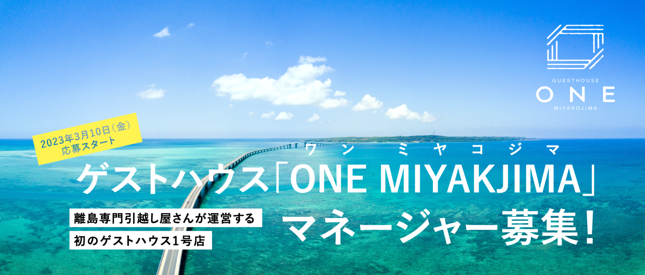 また今回のオープンに際し、ゲストハウス「ONE MIYAKOJIMA」の運営管理や、イベント企画などを通し島内外から愛される場所づくりを共に創ってくれるマネージャー、及びそのサポートをしてくれるサブスタッフの募集を開始いたします。