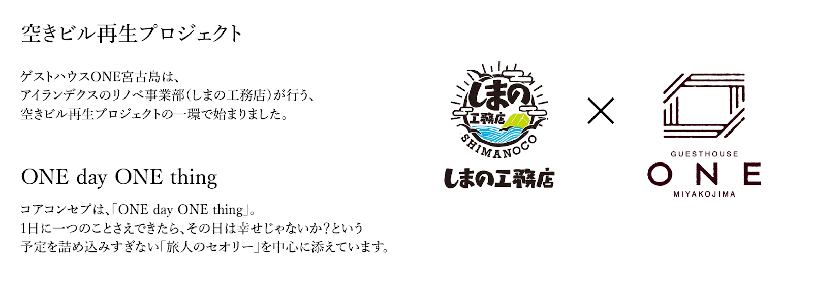 - 2023年5月オープン:ゲストハウス「ONE MIYAKOJIMA」とは