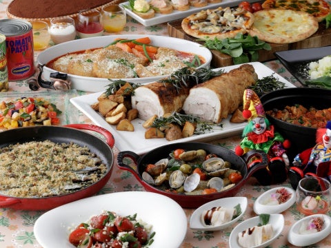 カラフルな色が目をひく前菜から肉・魚料理まで、バラエティ豊かなイタリア料理が並びます。ピザやパスタはオーダーごとに仕上げてアツアツをお届け。お肉や野菜をじっくり煮込んだ”ボリート”は、ワゴンサービスで各テーブルを回ります。