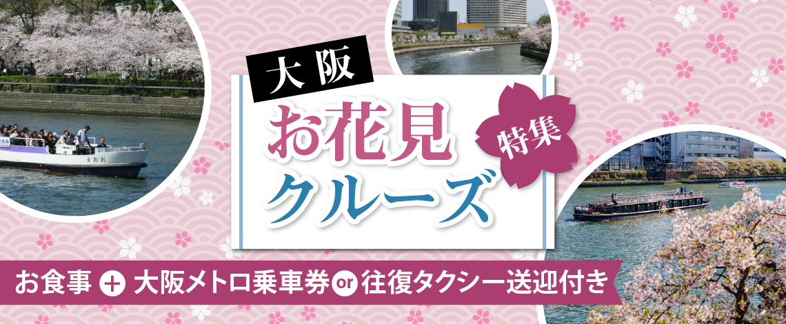 日帰りツアー 昼食(ランチブッフェ)+お花見クルーズ+大阪メトロ1日乗車券