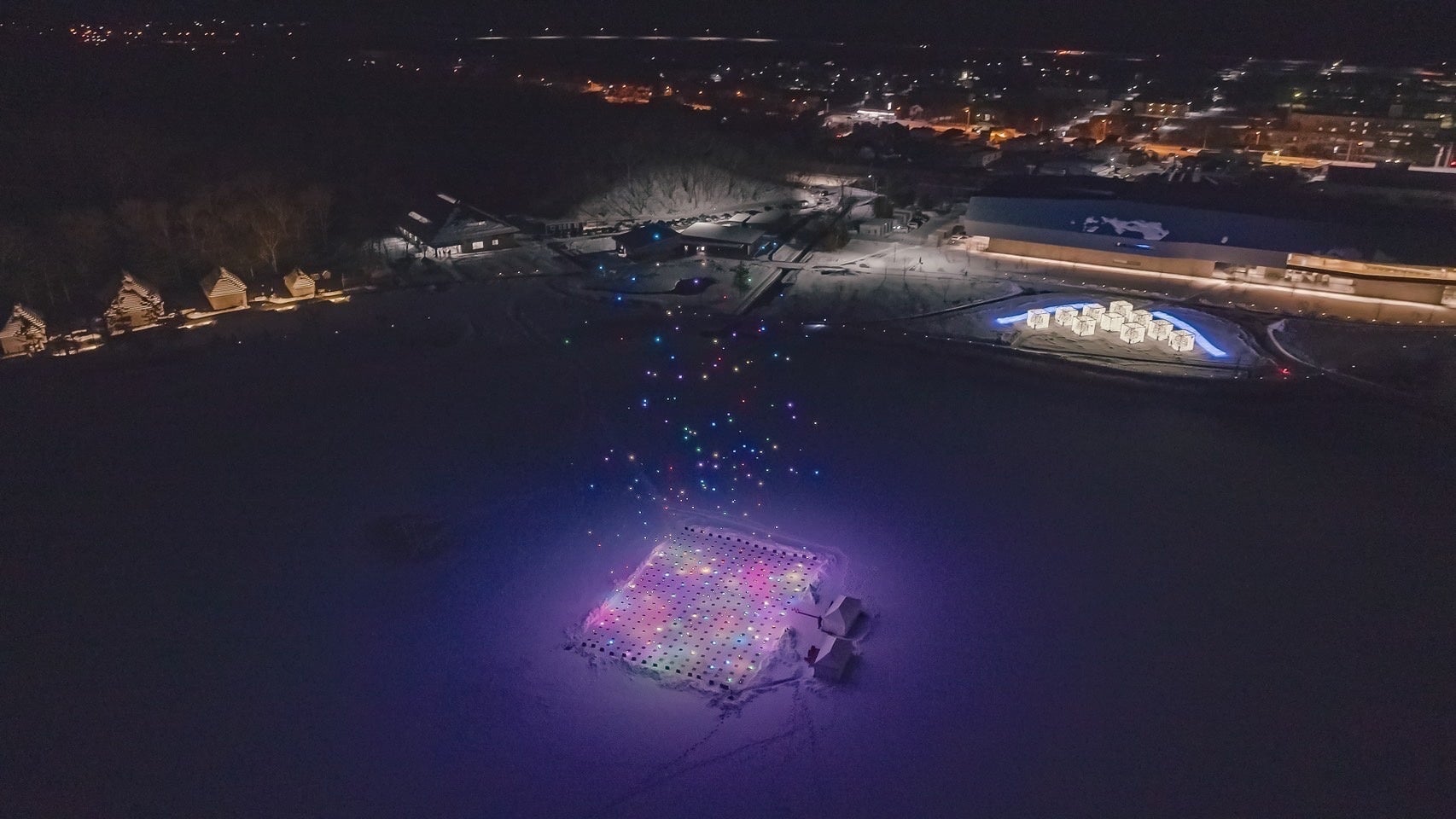 2023年1月の下旬から本ドローンショーは開始しましたが、準備段階で寒波に見舞われるなど、多くのハードルがありました。また、凍結湖上でドローンショーという難しい条件下でも合計9日間、全て無事にショーを実施しました。