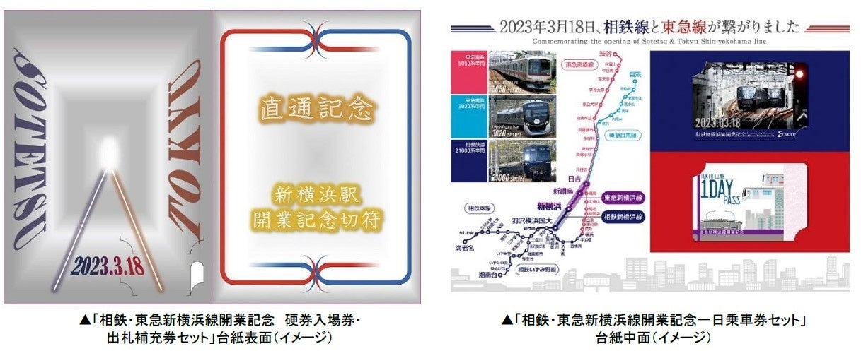 相模鉄道㈱(本社・神奈川県横浜市西区、社長・千原 広司、以下「相模鉄道」)と東急電鉄㈱(本社・東京都渋谷区、取締役社長・福田 誠一、以下「東急電鉄」)は、2023年3月18日(土)の相鉄・東急新横浜線の開業を記念して、「相鉄・東急新横浜線開業記念 硬券入場券・出札補充券セット」(以下、入場券セット)と「相鉄・東急新横浜線開業記念 一日乗車券セット」(以下、一日乗車券セット)を2023年3月18日(土)に販売します。