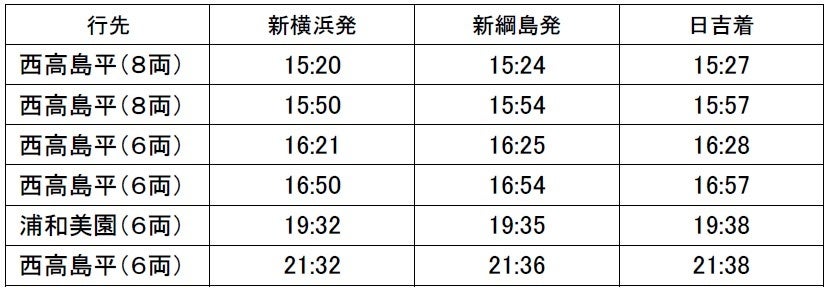 ※臨時増発は東急新横浜線内のみで、日吉からは通常ダイヤにて運行します。