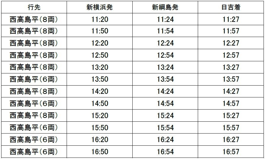 ※臨時増発は東急新横浜線内のみで、日吉からは通常ダイヤにて運行します。