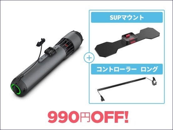 標準パッケージに、SUPボードマウントが付いたセットです。お持ちのSUPや取付可能なフローターなどを電動化できるので、水中スクーターの新しい遊び方を見つけたい方におすすめです。