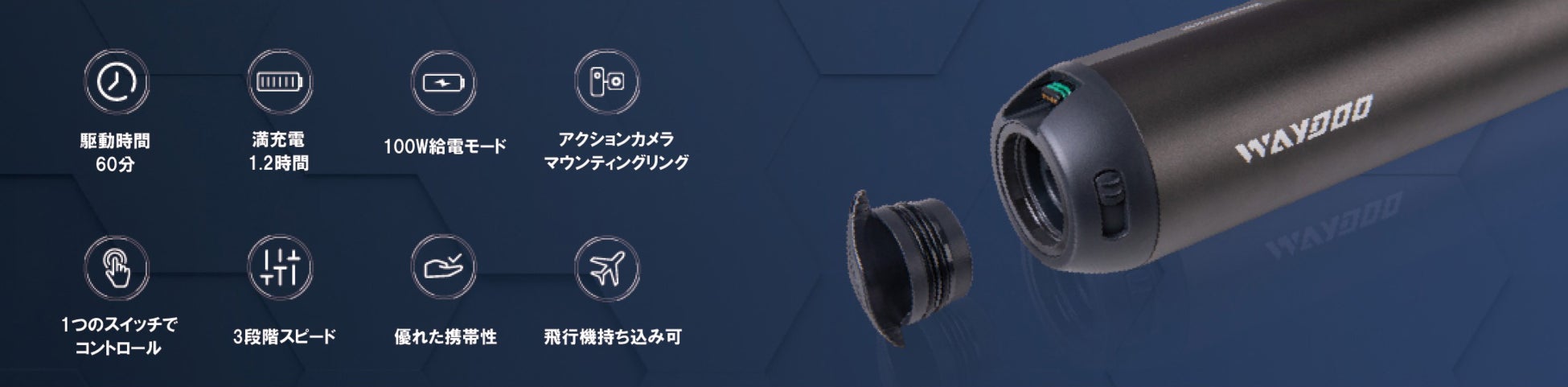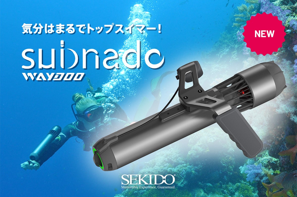 株式会社セキド(本社:東京都港区、代表取締役:⼤下貴之)では、2023年3月10日(金)より世界最軽量クラスで様々な用途に対応した超小型水中スクーター「subnado(サブナード)」の販売を開始いたします。先進的ウォータースポーツハードウェアメーカー「WAYDOO(ウェイドゥ)」が製造する全く新しい水中スクーターは、先行して実施したクラウドファンディングでは海外を含め 9,000万円を超える支援を集めた、もっとも注目のウォーターガジェットです。1.4kgと軽量ながら最高速度 5km/hで最大深度 60m、最大稼働時間 60分とダイビングをもっと手軽に楽しめます。アタッチメントを使ってタンクに装着したり、SUPやフローターに取り付けて電動化も可能です。操作は手元のスイッチ1つ、誰でもすぐに水中遊泳が楽しめます。高い機密性と手軽なメンテナンス性を備えたアルミ製ボディで、これまでにない美しいデザインも魅力です。ハンドルグリップとアームマウントが付いた標準セットは税込 71,500円で、初めてのスクーターとしても、持ち運びやメンテナンスがストレスだった従来品からの買い替えにもおすすめです。