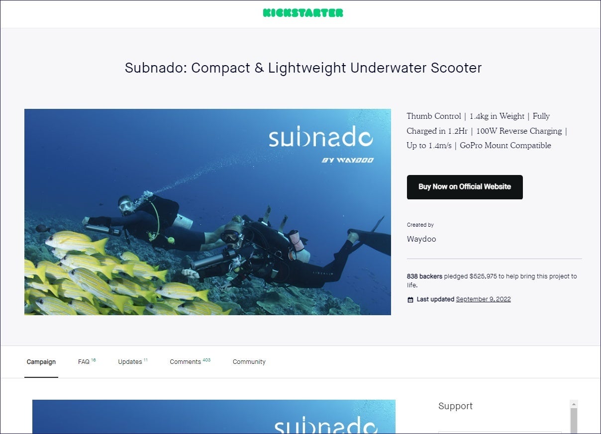 2018年より水中スクーターの販売やプロモーションを実施し、ダイバーを中心に多くのユーザーに新しいウォーターアクティビティとして水中スクーターをお使いいただいております。