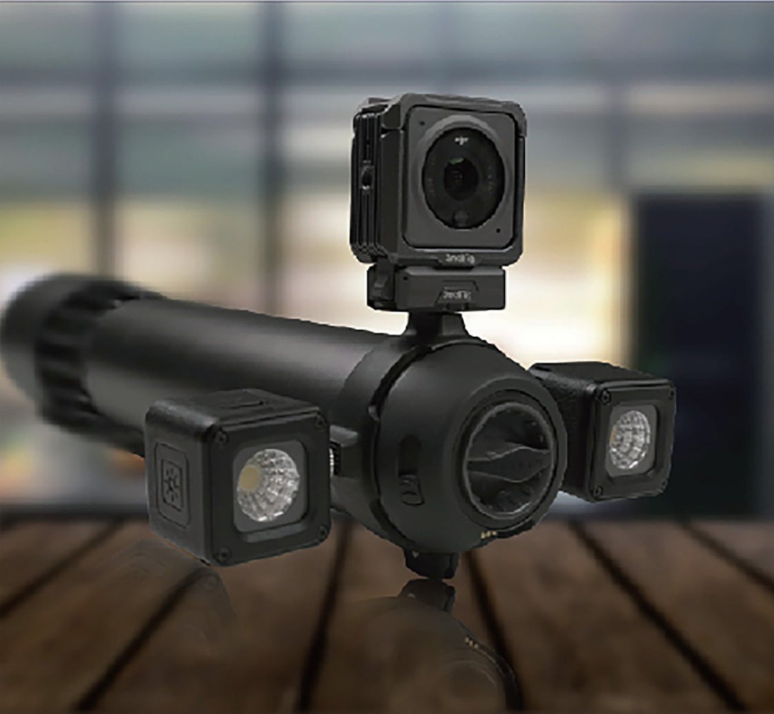 オプションとして1/4インチカメラネジが3箇所設置された取り付けリングが付属しています。必要に応じて本体に取り付けることで、サードパーティ製のカメラやライトなどを自由に取り付けて、水中で使用することが可能です。