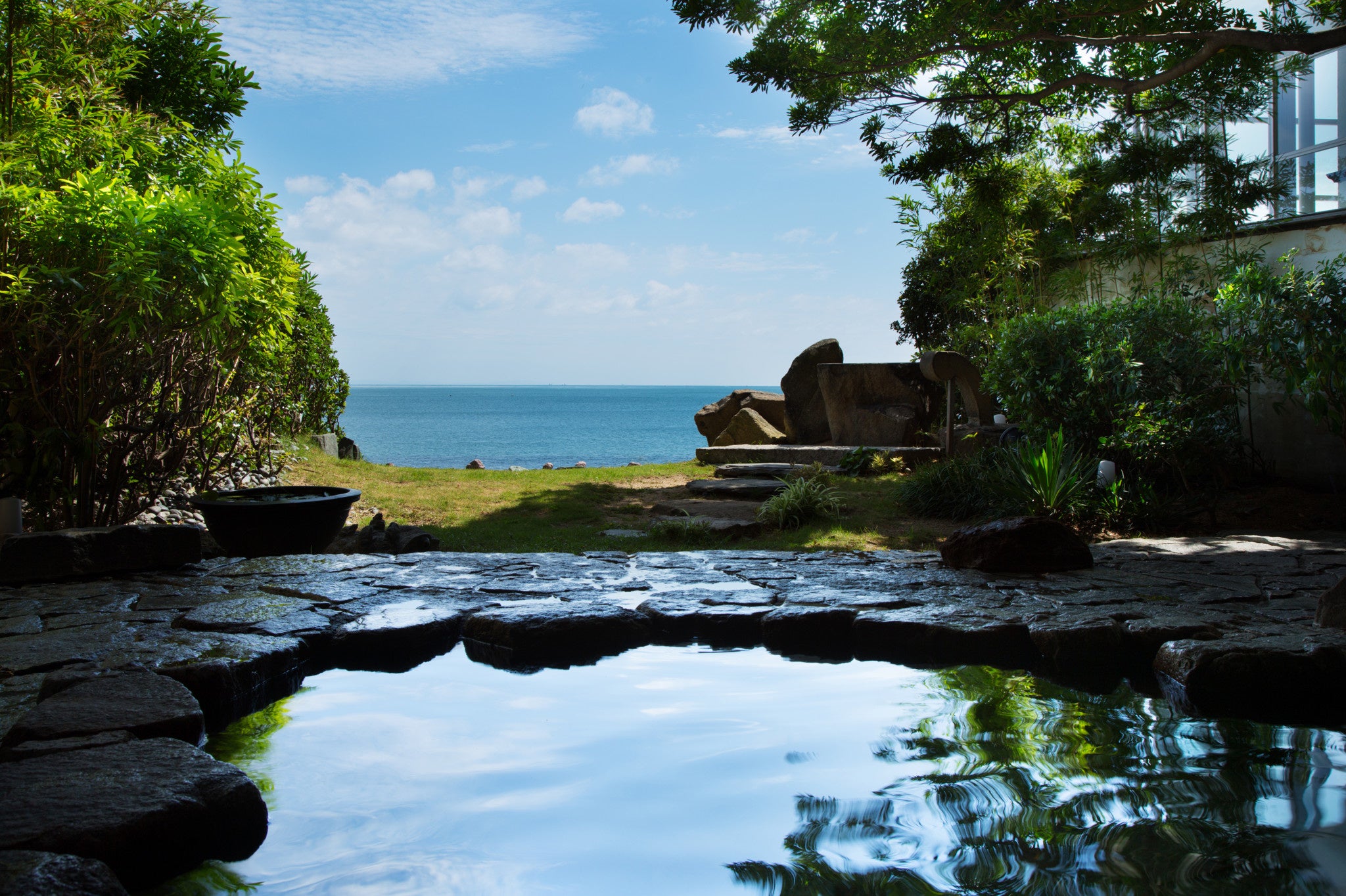淡路島から車で10分、瀬戸内海国立公園内のオーシャンフロントホテル。目の前に鳴門海峡~淡路島の絶景が広がります。