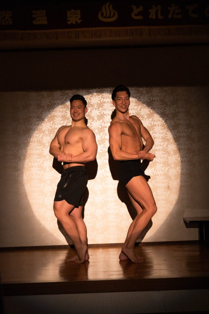 「使う用途ないけど面白い」とSNSやメディアで話題のマッチョのフリー素材・ストックフォトサイト「マッスルプラス」。宮崎県高原町の「皇子原温泉」でくつろぐマッチョや仲居のマッチョたちのフリー素材を撮影しました。