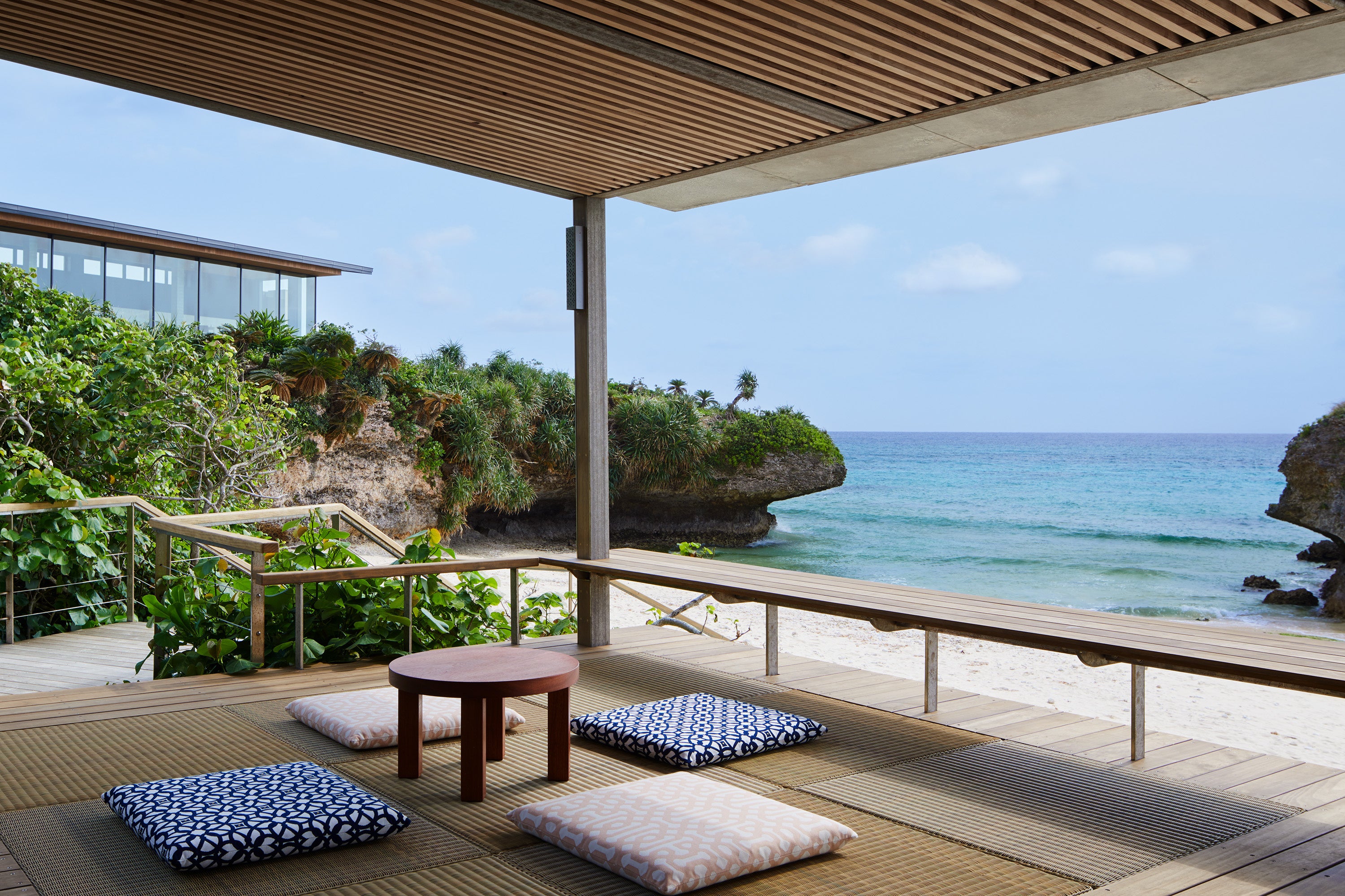 入り江を囲うような崖の上にたつバンタカフェでは、浜辺へと続く「海辺のテラス」や、高台から水平線を臨む「大屋根デッキ」、壁一面の窓から海を望む屋内の「ごろごろラウンジ」など、4つのエリアがあります。期間中は、南国沖縄らしいトロピカルフルーツを使ったメニューが豊富に揃い、海を眺めながら、沖縄の夏を満喫できます。