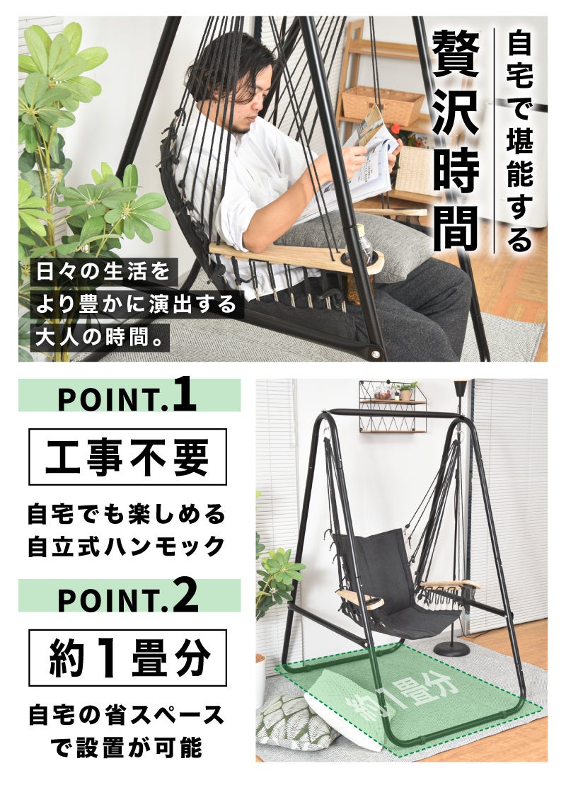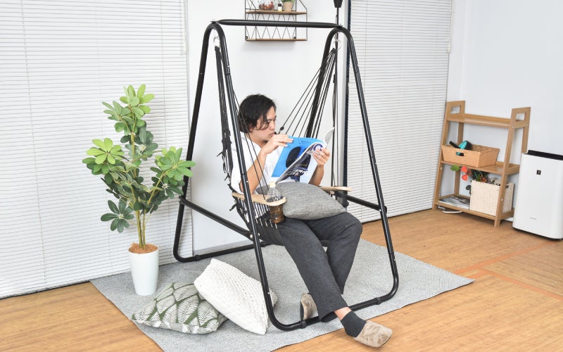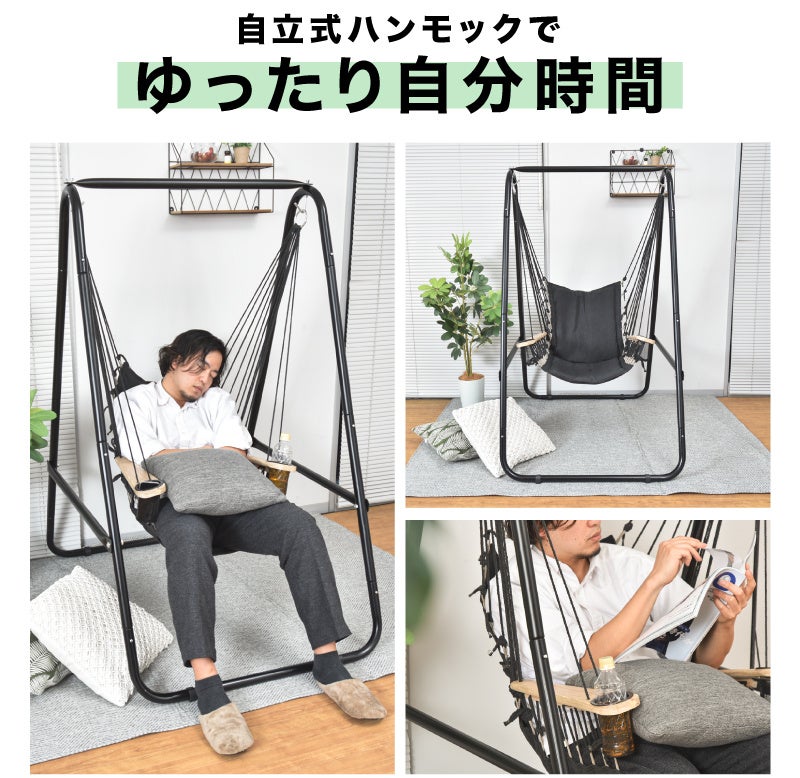ハンモックでリラックス 自立式でどこでも置いて使えるハンモックチェア