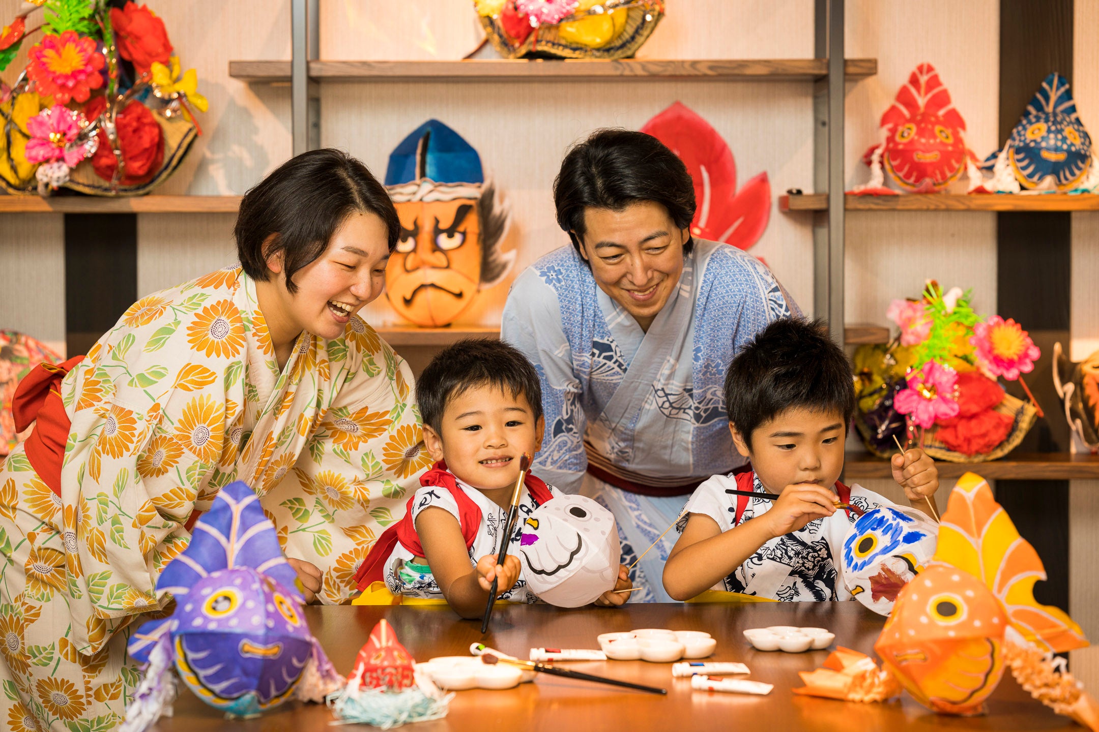 青森の文化を目一杯満喫できる温泉宿「星野リゾート 青森屋」では、2023年7月1日から8月31日までの期間、家族で青森ねぶた祭の熱気を体感するアクティビティ「まるごとねぶた体験」を実施します。青森で親しまれている夏の風物詩「金魚ねぷた」の絵付け体験や、スタッフから教わりながら、青森ねぶた祭のお囃子体験ができるアクティビティです。また、ねぶたの山車曳きや青森ねぶた祭の盛り上げ役の跳人(はねと)、楽器を演奏する囃子方など、さまざまな役割を家族で演じて、青森ねぶた祭の熱気を再現します。