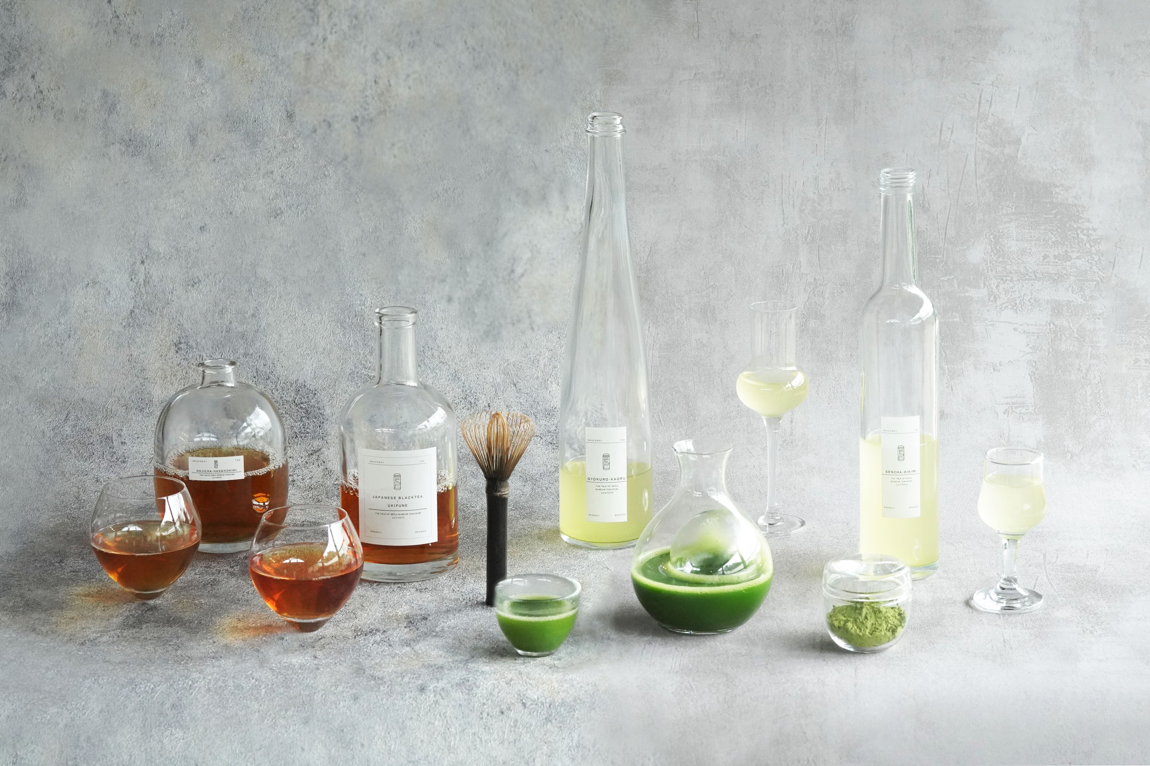 厳選した宇治茶や彩り鮮やかな各地の名茶を日本茶の第一人者である宇治の茶匠直伝の淹れ方で味と香りを楽しむことができます。冷茶は上写真のようなボトルスタイルでサーブいたします。