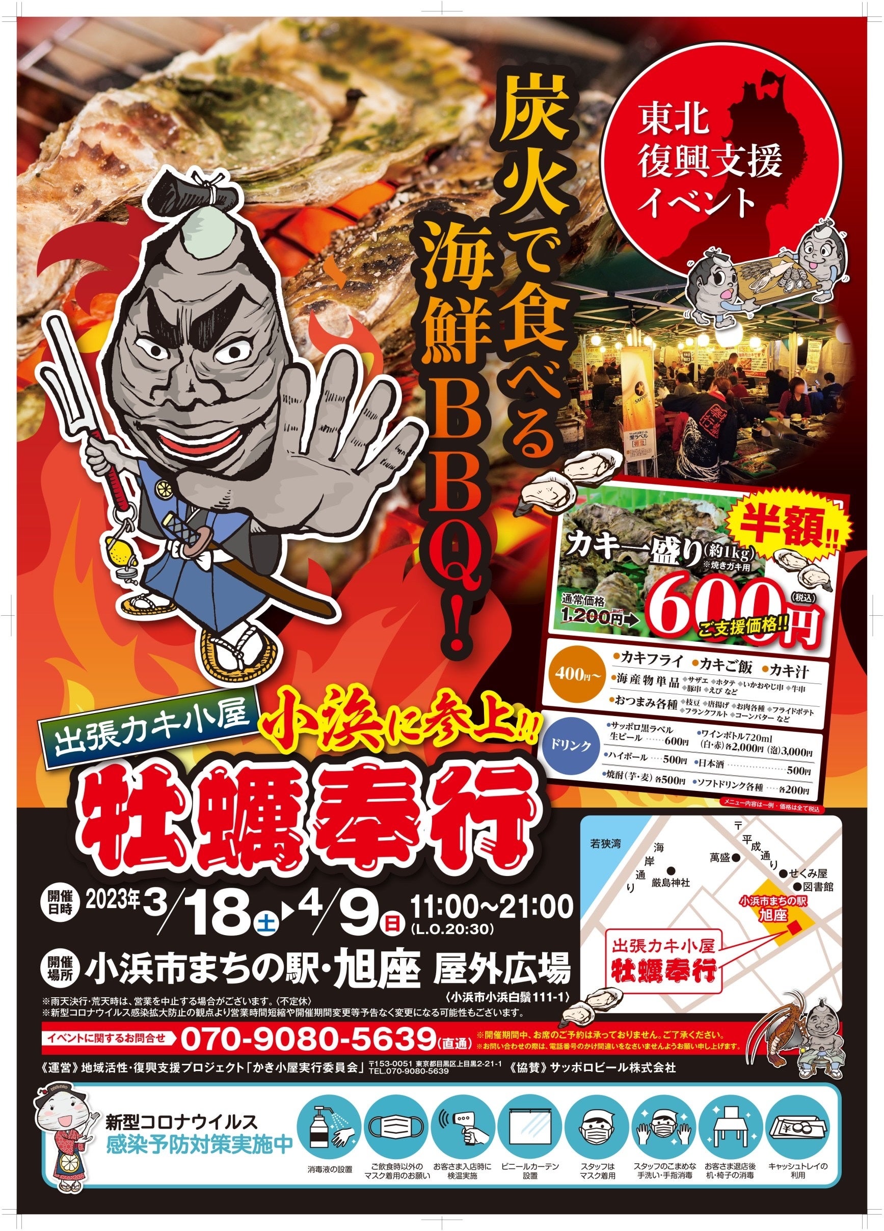 小浜市まちの駅旭座で牡蠣!3/18〜 出張カキ小屋が旭座にやってきます「地域活性・復興支援プロジェクト 牡蠣奉行」休日にご家族と!お仕事終わりの皆様も!