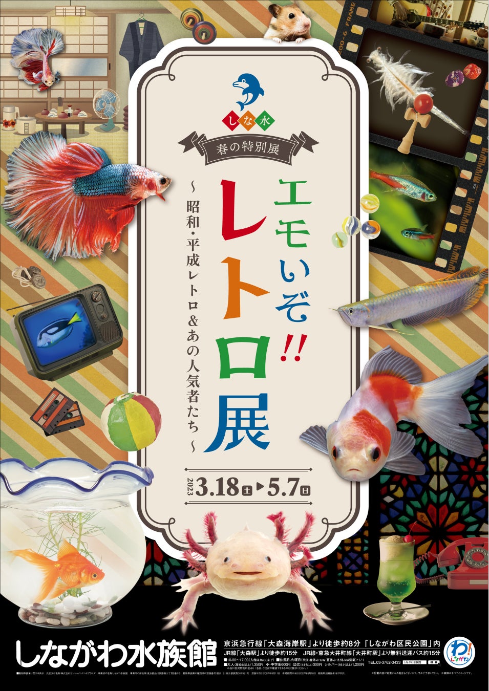 しながわ水族館(東京・品川、館長:鈴木正勝)では、近年注目される昭和・平成レトロなどのレトロブームについて、様々な年代でブームを巻き起こした生き物たちとの展示をおこなう、レトロをテーマにした春の特別展「エモいぞ!!レトロ展」を2023年3月18日(土)~5月7日(日)の期間で開催します。