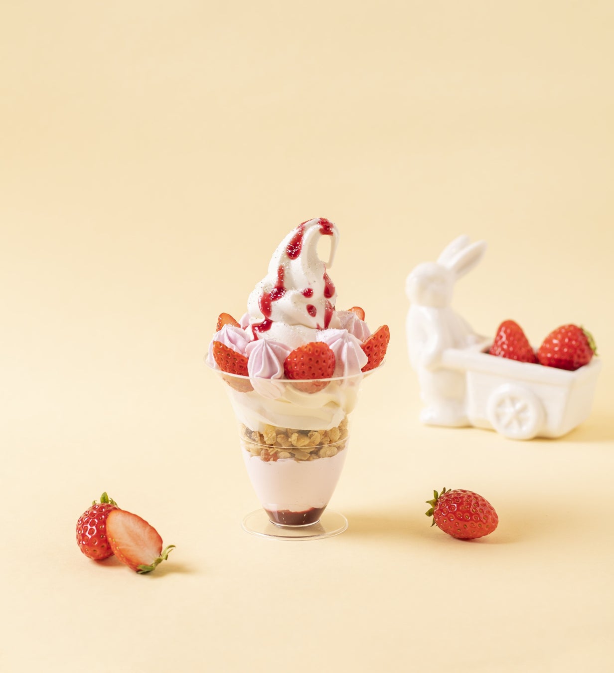 白い恋人ソフトクリームホワイトに、いちごやラズベリーソースを合わせ甘酸っぱく仕上げました。