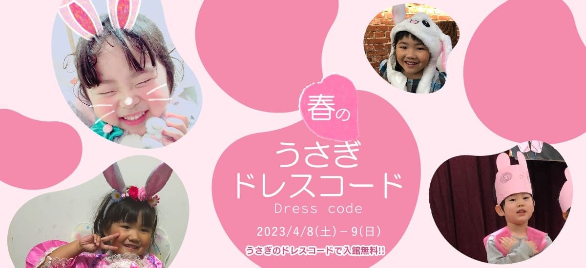 対象日にうさ耳をつけると小学生以下入館無料になります。