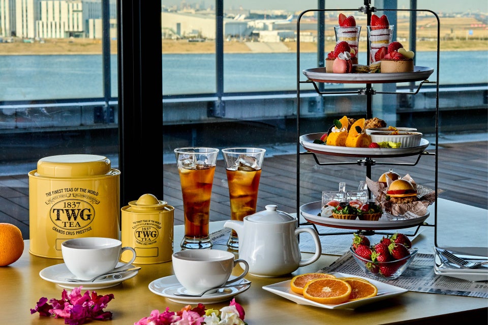 ウォーターフロントと、広い空が広がる非日常の空間で、都会の喧騒を忘れ優雅なティータイムをお過ごしください。