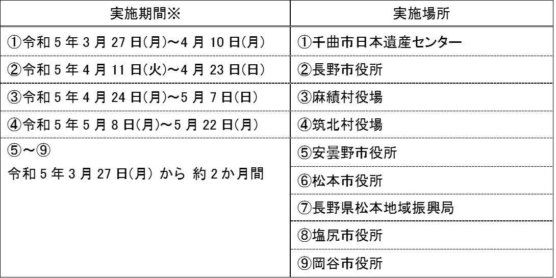 ※実施期間は実施場所によって変更になる場合があります。各実施場所の閉庁日および休館日は除きます。