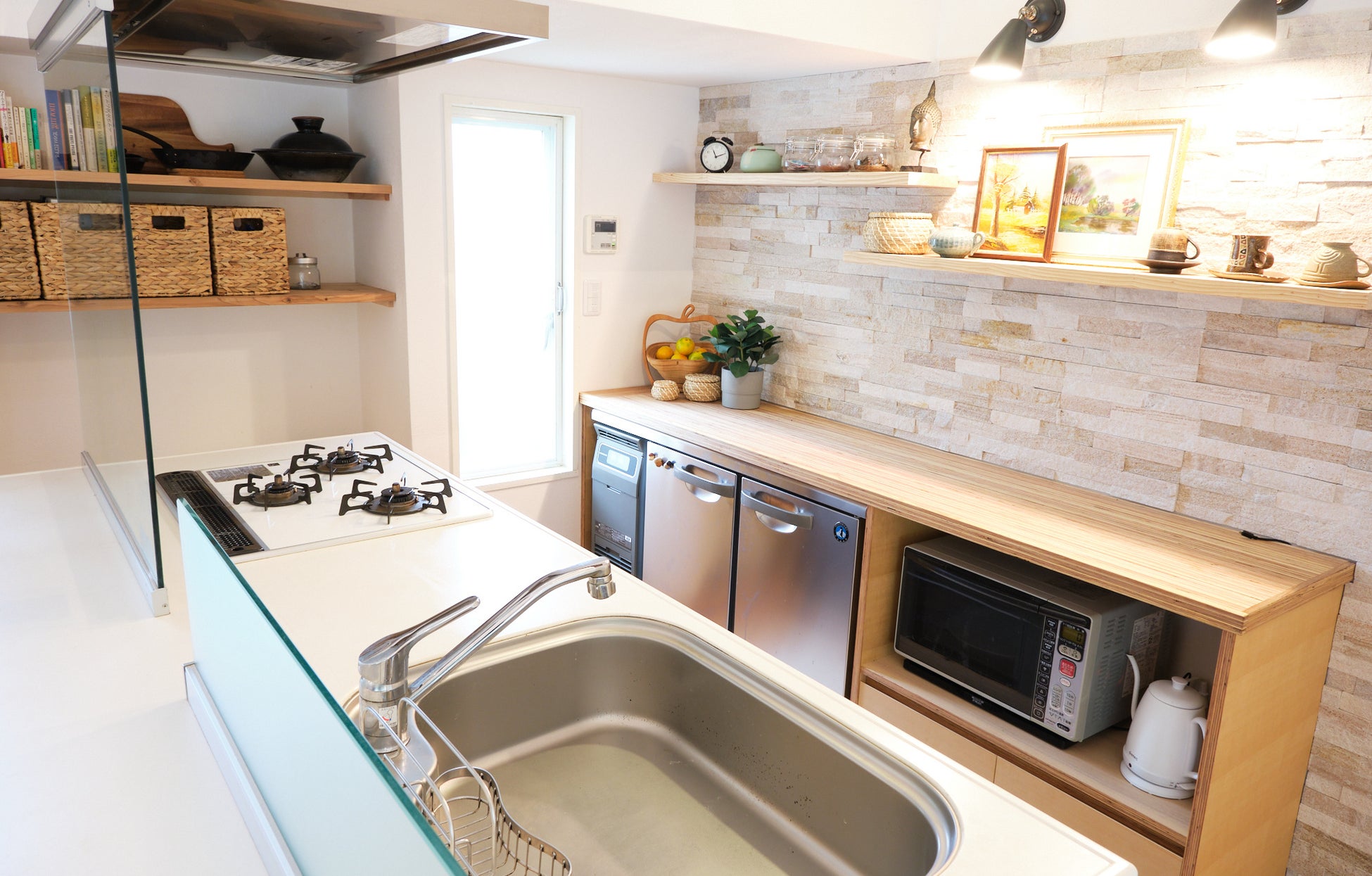 美空間スタイリストの資格を保有するオーナーによって選ばれた伊豆のアーティストの作品や、世界各国から収集された一点もののオリジナル・アートや焼き物の数々が、スタイリッシュなインテリア空間を作り出しています。