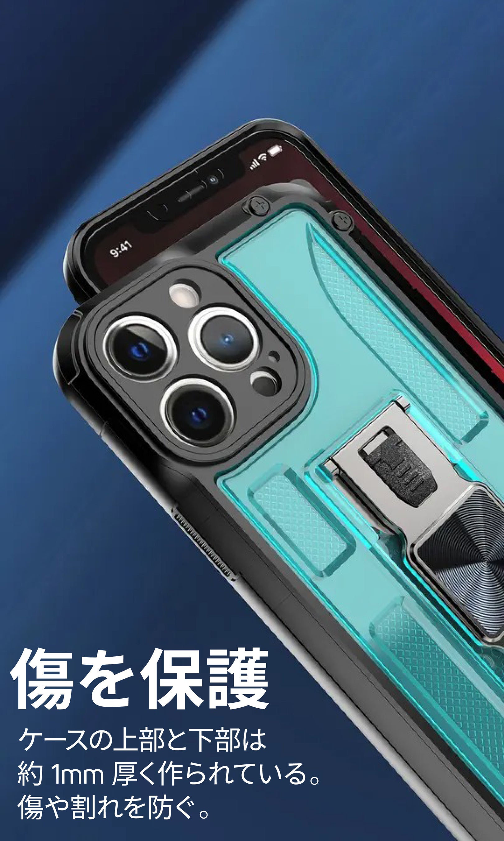 そのためスマートフォンを落としたりしても1mm厚く作られたフレームが落下の衝撃での画面割れやヒビ割れを防いでくれます!
