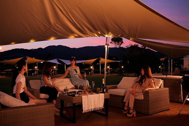 ナイトBBQは、施設装飾の一番の見せ所です。各サイトにランタンが灯り幻想的な映え空間を演出します。仲間と談笑で弾みはしゃぐのも良し。ワインやシャンパンを片手にゆっくり語り合うのも良し。