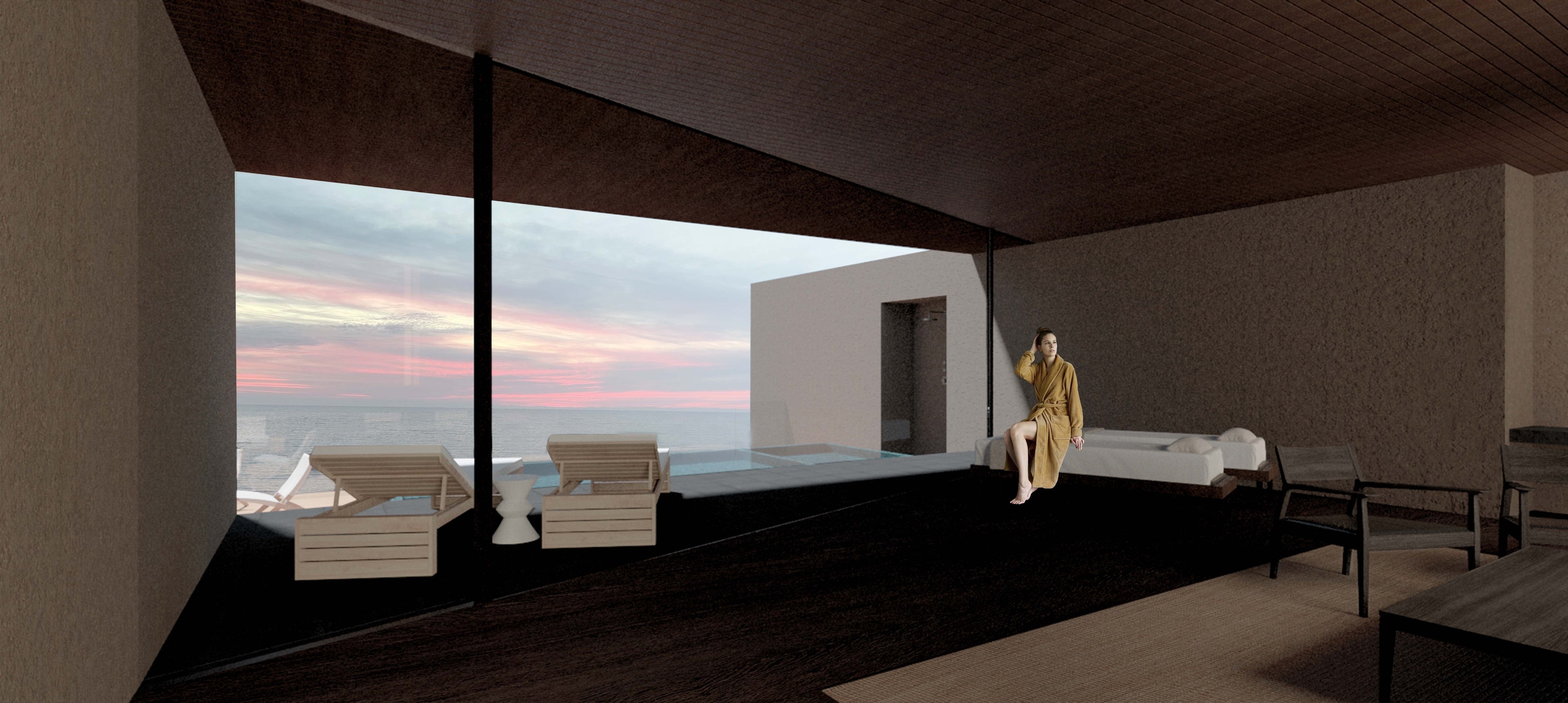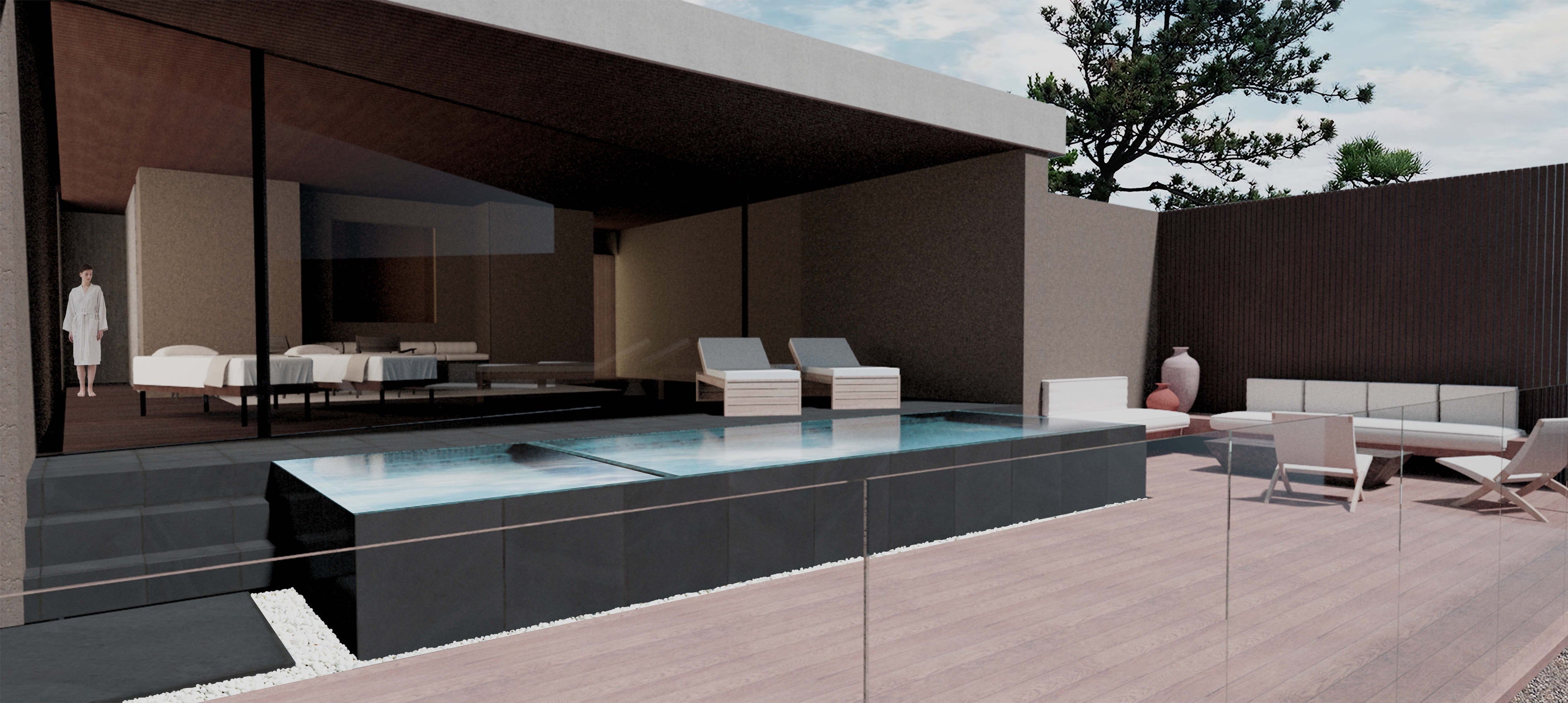 この度、ホテル敷地内に新設するインフィニティプール・サウナハウス・ジムの3施設の設計デザインは、新関謙一郎氏率いるNIIZEKI STUDIOが監修。特にインフィニティプールとサウナハウスは、雄大な海との繋がりを表現した空間設計で構築され、太平洋の絶景を一望しながらゆっくり寛ぐことができるウェルビーイングなステイをご提案します。また、今回のリニューアルにおける顧客体験の企画制作は、ミレニアル世代の企画チーム株式会社AIDAMAが担当。各種アメニティ選定やプラン設計など、より心地よい滞在をかなえます。