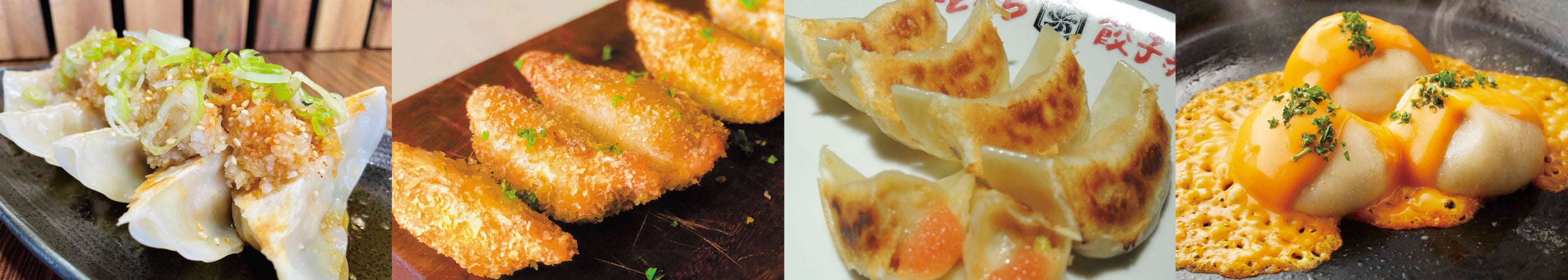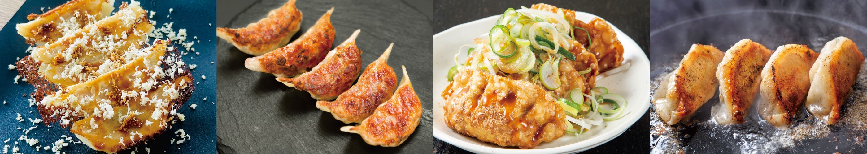 鹿児島県産の幻の黒豚「アベル黒豚」を使用し、深い旨味とコクが感じられる焼き餃子は【餃子専門店 さんくみ】の看板メニュー。本来の濃厚な餃子とネギポンを合わせた「あっさりネギポン餃子」は、パリッと焼かれた薄皮と長ネギの食感と風味がいいアクセントに。 イタリアンのシェフが考案した、【餃子とワイン 果皮と餡】の衣を纏った揚げ餃子「十勝産濃厚味噌バター牛カツ餃子」は、独自にブレンドした白味噌と八丁味噌、北海道産バターと掛け合わせ、隠し味の6種類のスパイスをプラスした風味豊かな餡がやみつきに。明太子とチーズの至福の組み合わせを包んだ【博多餃子舎603】の人気メニュー「明太チーズ餃子」は、そのまま食べても塩で食べても◎。【餃子の宮でんでん】の見た目がキュートな丸い水餃子にチーズを流しかけた「チーズのせ爆汁丸餃子」は、モチモチ食感がたまらない。