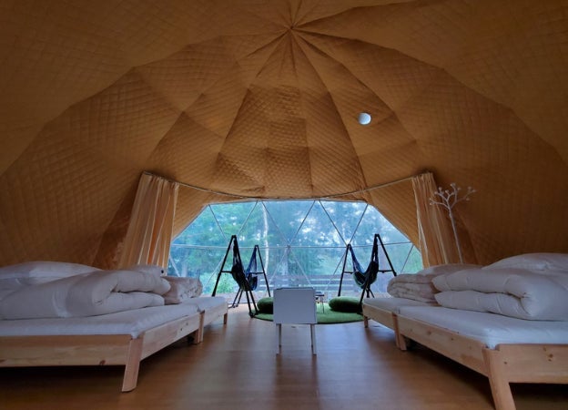 特に夜になると都会のネオンとは違う、満天の星で照らされるグランピングドームは幻想的。
