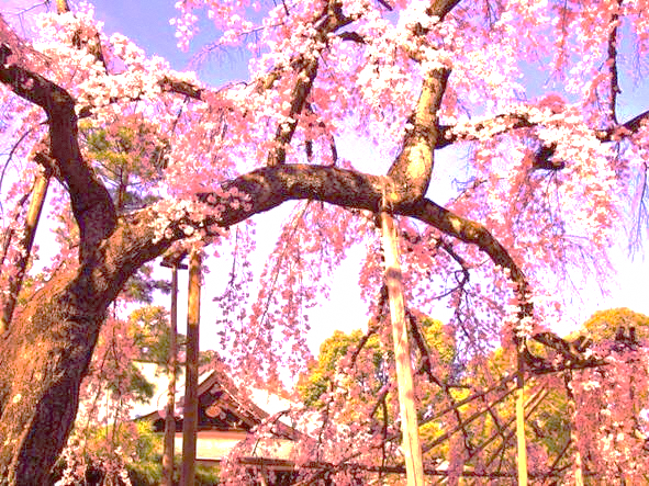 小金、旧水戸街道沿いにある530年の歴史をもつ浄土宗のお寺、東漸寺の境内は古来より森に囲まれ、樹高約9m、樹齢300年を超えると言われているシダレザクラは松戸市の天然記念物に指定されています。
