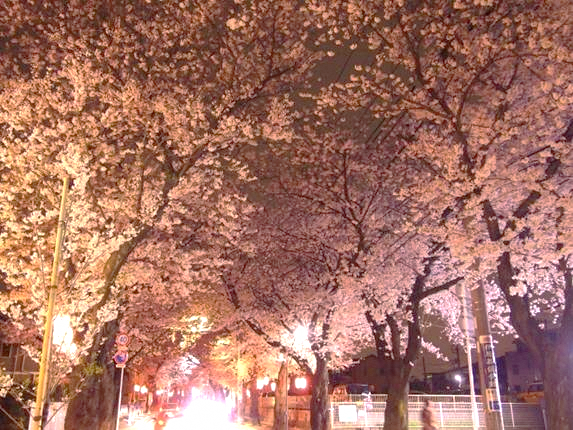 常盤平さくら通りの桜橋まで(提灯点灯 夜桜もお楽しみください)