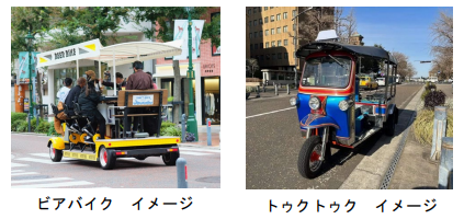 「花咲く Rally」では、横浜らしい景色を感じながら移動そのものを楽しめる乗り物、オランダ発祥の移動式ビアカウンター「ビアバイク」や、東南アジアを中心に普及している「トゥクトゥク」を使った、ガイド付きのツアーを実施します。(予約は、公式 HP より 4 月上旬から受け付けます)