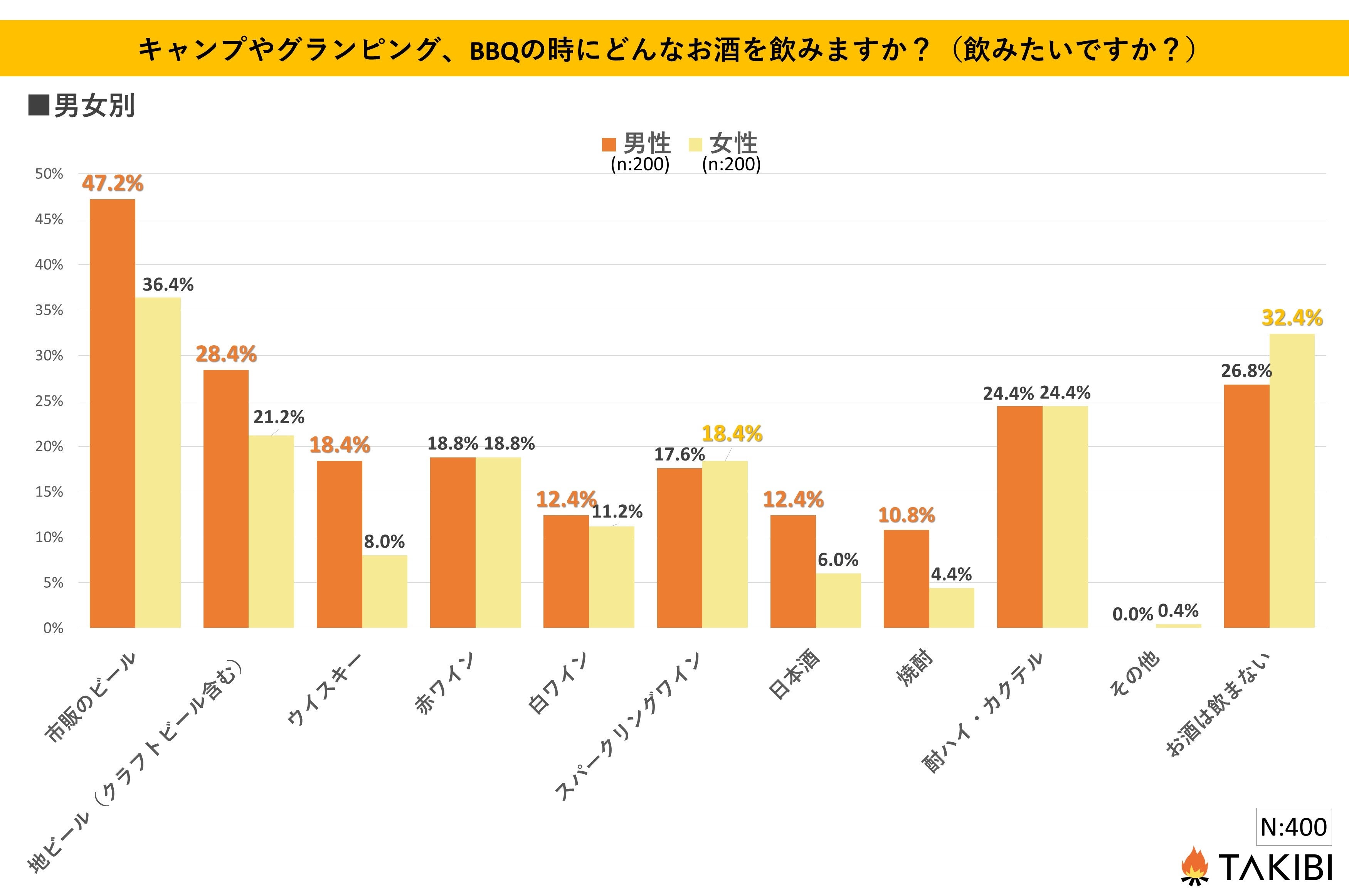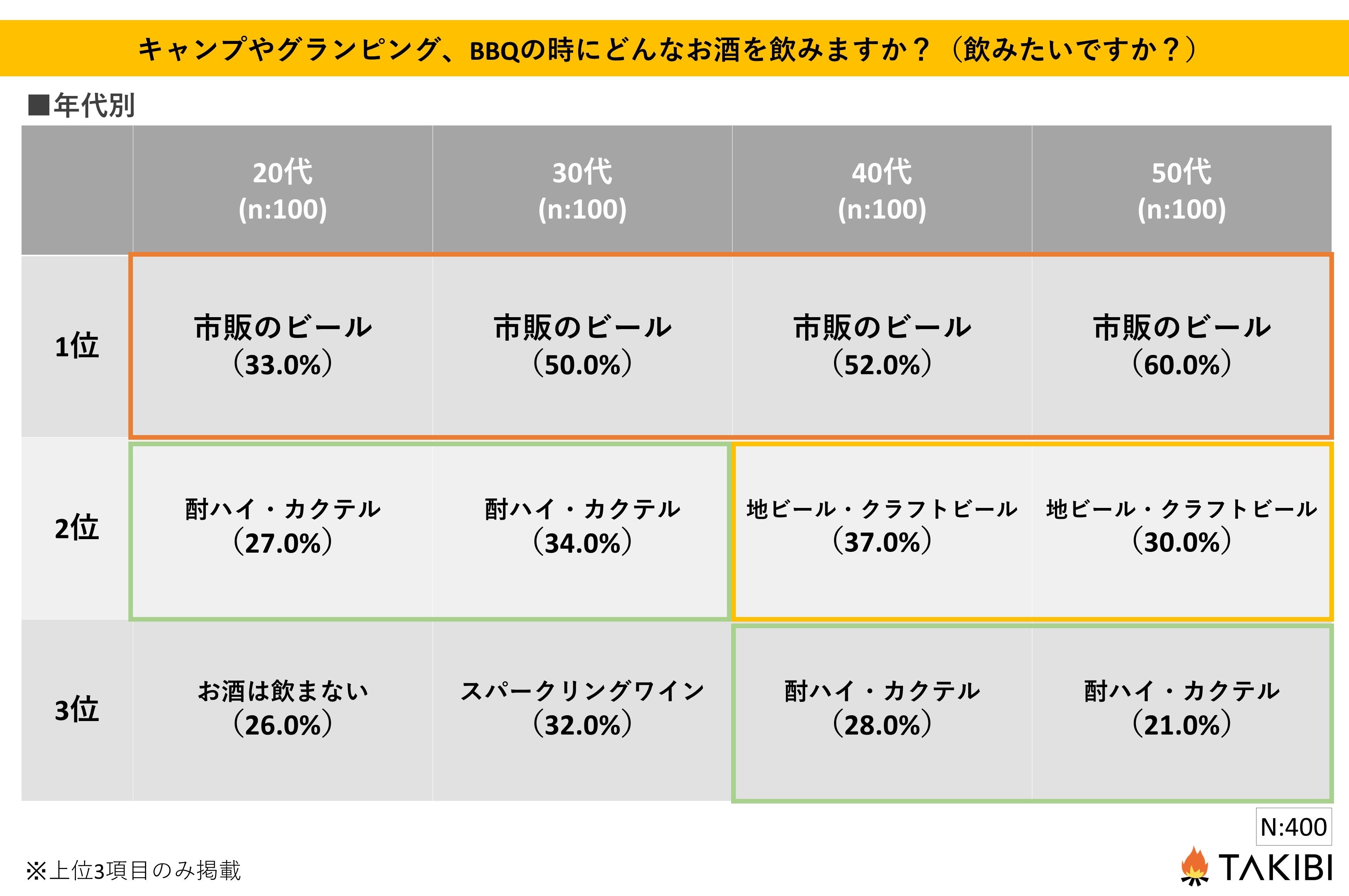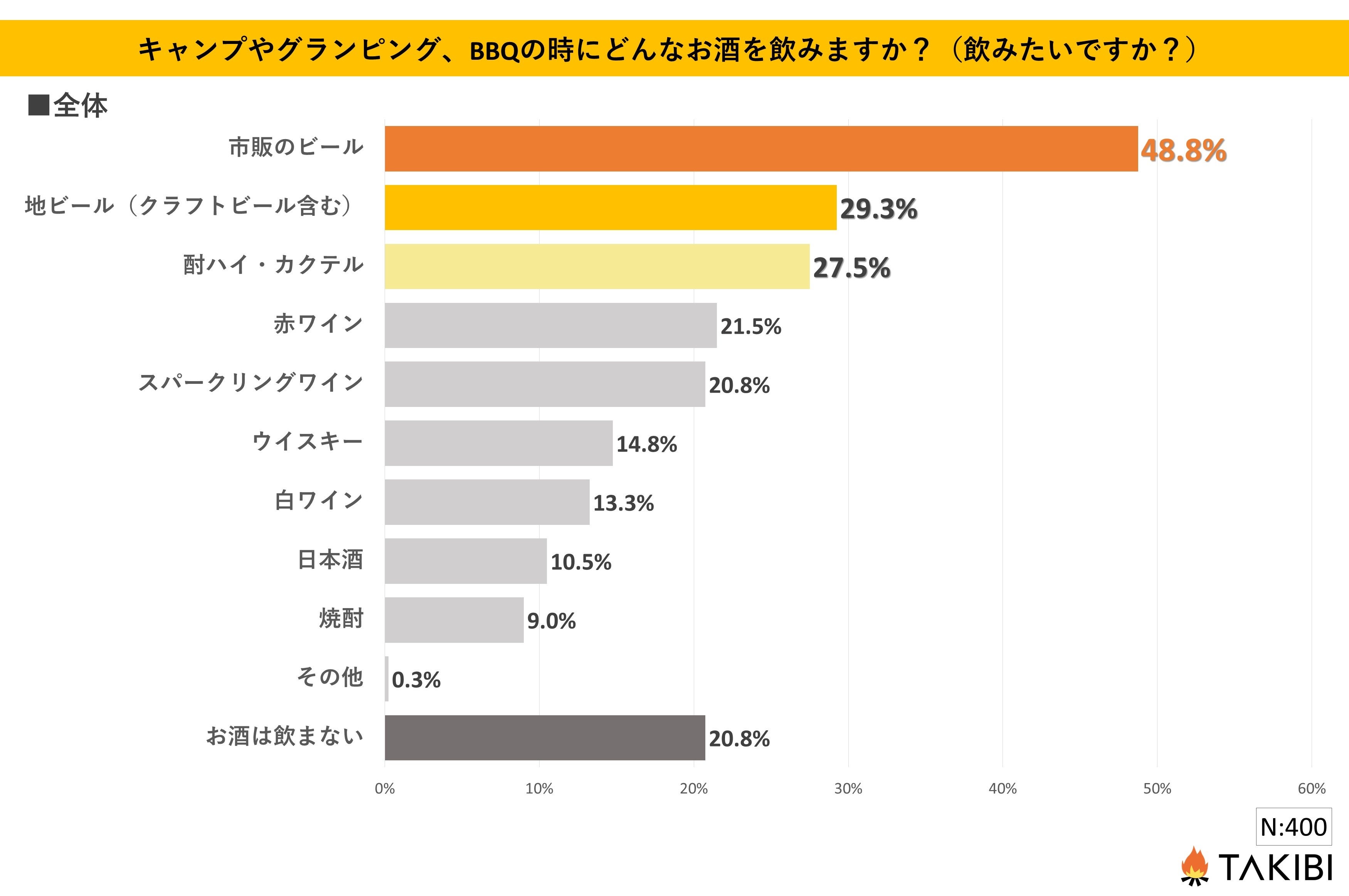 【質問:キャンプやグランピング、BBQの時にどんなお酒を飲みますか?(飲みたいですか?)】