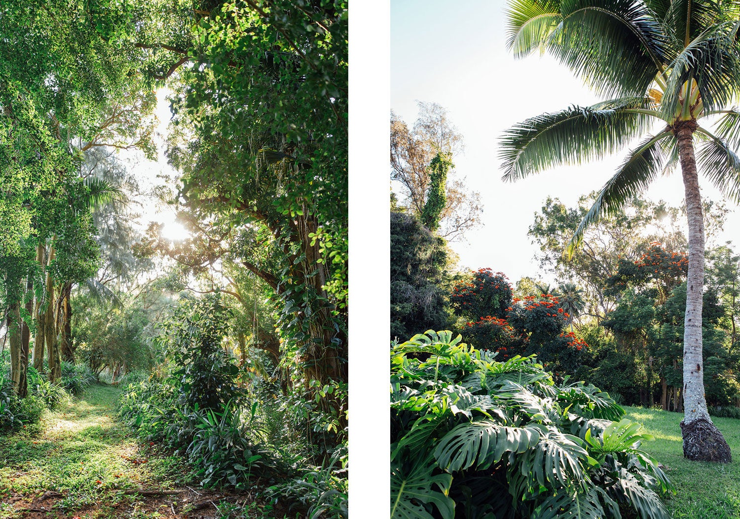 良きハワイ感じるこの場所は、清らに風が流れ、陽の光がそそぎ、鳥がさえずり耳をすませば、自然を五感で感じることができる希少な場所です。自然のエネルギーをうけた大地には、樹齢200年の生命力あふれるバニヤンツリーが木陰を作り、ハワイの木々や緑に囲まれる癒しの空間でそっと私たちを見守ってくれています。その豊かで美しい大自然は、身を置くことで本来の自分に自然と戻してくれます。